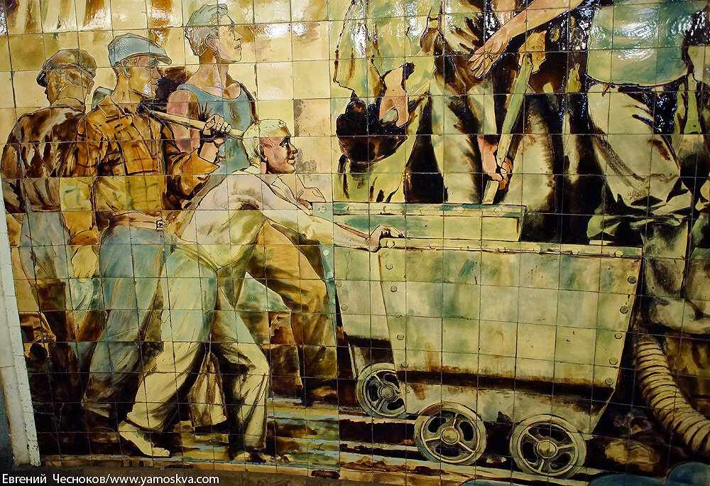 Серию сюжетов про интерьеры я хотел озаглавить «Сталинское метро», но оказалось, что уже существует книжка с таким названием, а повторяться не хочется. Знакомый культуролог подсказал, что не будет большой ошибкой отнести подземное творчество художников и скульпторов к понятию «социалистический реализм». Ну пусть будет «Соцреализм в метро».