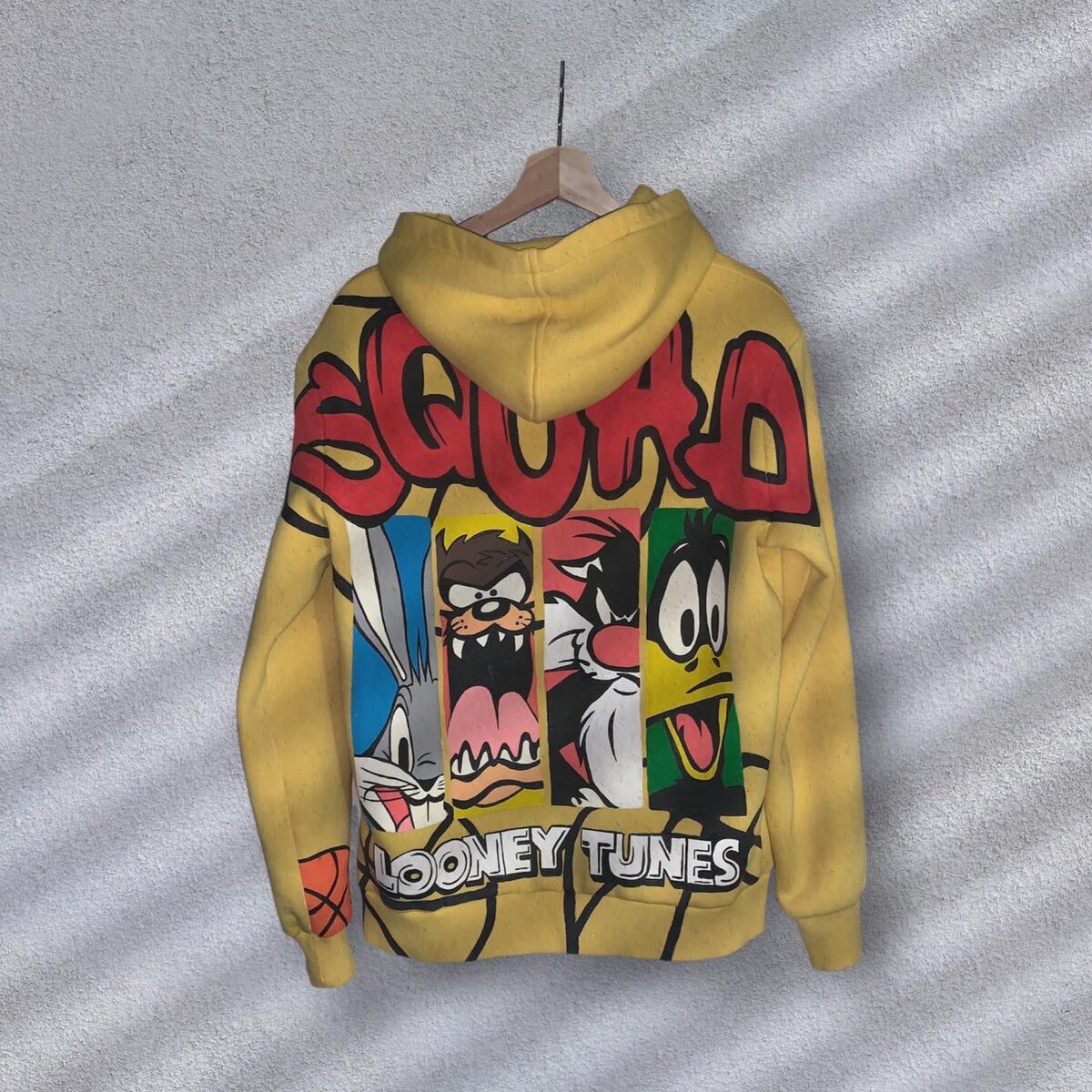 Одна из моих работ, которую я рисовала себе! История такая… эта была моя любимая желтая Толстовка, но однажды я пролила на неё что-то вроде кофе или ещё что-то и оно не отстиралось. Я недолго думая решила, что-нибудь нарисовать. И тогда как раз должен был скоро выйти мультик Космический джем 2! Я как настоящий любитель баскета, конечно же видела первую часть фильма, поэтому решила сделать принт по его мотивам. Очень долго возилась с эскизом.. не люблю делать что-то себе именно поэтому. Хочется что-то идеальное и поэтому у меня было миллион вариантов 😂 Ну наконец определившись, нарисовала. Очень долго и не совсем удачно. Краска оказалась слишком твёрдой в итоге и носить ее не очень удобно… К счастью я обзавелась другими красками, которые намного мягче! Правда дороже…. Это был интересный опыт. И как итог - принты на моих заказах теперь будут намного мягче, а Толстовка висит в шкафу как настоящий экспонат! #росписьтолстовки #кастомтолстовок #космическийджем