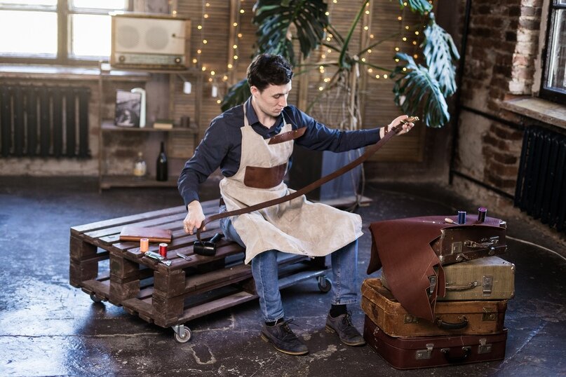 Это значит, что мы гарантируем, что ваш ремень будет служить минимум 10 лет: его пряжка не облезет и не сломается (в отличие от ремня из магазина), его полотно не расслоится и не потрескается – кожу мы сами режем на полосы, поэтому наши ремни точно кожаные, а не из genuine leather. Кстати, далее расскажем о том, из чего некоторые производители делают ремни) Такое невозможно! Но если что-то случится с ремнем, мы поменяем пряжку или полотно бесплатно. Конечно, если ремень съела ваша собака или вы потеряли свои штаны вместе с ремнем, за это мы ответственности не несем. Однако, если вы через 5-10-15 лет придете к нам, мы с радостью попьем с вами кофе и сделаем ТО вашему ремню – вновь отполируем, обработаем финишной пропиткой для защиты от влаги, покрасим торцы и т.д.