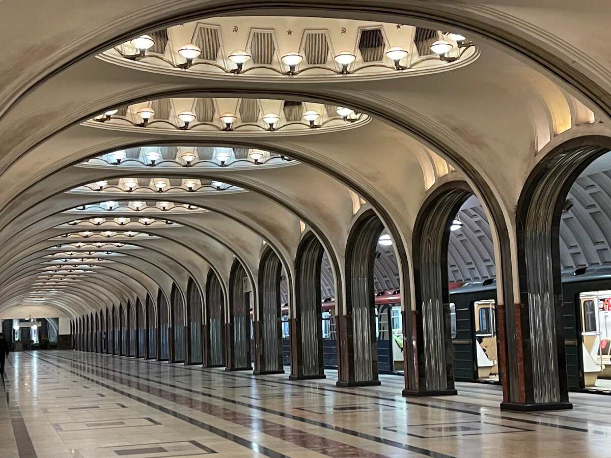 Я уже не раз писала о московском метро. Оно такое разное, все более удобное, настоящий город в городе и значимая столичная достопримечательность. Красивых станций в московском метрополитене много, но все-таки для меня самая-самая – это Маяковка. Создал этот архитектурный шедевр А.Н. Душкин. Он был буквально одержим этим проектом и создал 7 вариантов интерьера. Нужно было создать ощущение воздуха и легкости, ведь станция глубокого заложения и нужно было избавить пассажиров от ощущения подземелья. Душкин придумал изящные и очень надежные стальные арки, которые специально изготовили на авиазаводе. И сделал «световые» окна, в которые вставили мозаики А. Дейнеки с кусочками неба. Сюжет мозаик – сутки советского неба. Запуск станции произошел 11 сентября 1938 года. А через год проект был удостоен Гран-при на Всемирной выставке 1939 года. Сейчас станция, как архитектурный объект, находится под охраной ЮНЕСКО. Станция выполнена в респектабельном стиле ар-деко. Архитектор использовал дорогие о