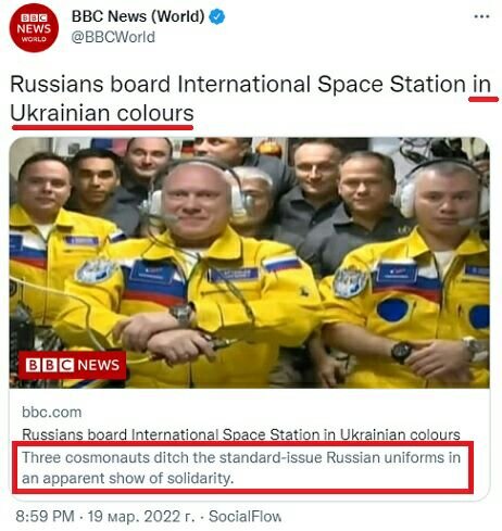 Какая-то патология чесслово 😂 Комбинезоны наших космонавтов разорвали мозг у иностранных русофобов. Они внезапно подумали, что это протест против "вторжения". Рогозин отреагировал быстро и чётко. Наши космонавты в гробу видали украинских нациков. Но отказываться от каких-то цветов в исполнении герба Бауманского университета или в цветовой гамме стартового комплекса "Союз-2" мы не собираемся. Мы лучше свидомых укронациков догола разденем, чем в чем-то им уступим", — написал Рогозин Всё объясняется очень просто «Иногда жёлтый цвет - это просто жёлтый цвет. Летные костюмы нового экипажа выполнены в цветах эмблемы МГТУ имени Баумана, выпускниками которого являются все трое космонавтов» При этом даже зарубежные репортеры отмечают, что летные костюмы экипажа изготавливаются и упаковываются за несколько месяцев до старта. Видеть везде и во всём украинский флаг — это уже клиника! #космонавты #дмитрий рогозин #цвет костюмов космонавтов #дб