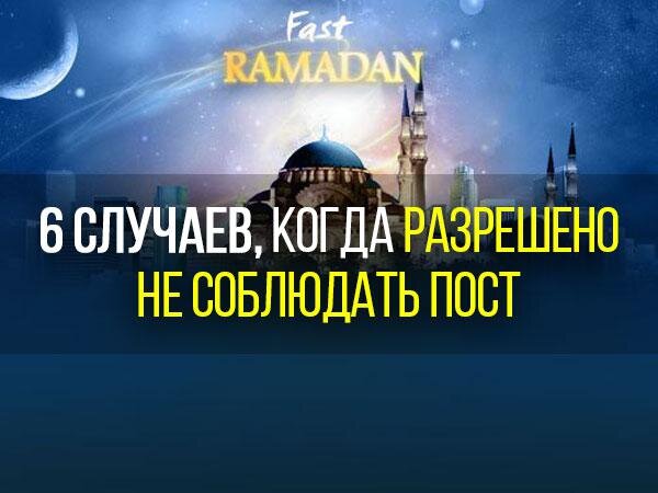 Более того, в некоторых исключительных случаях представителям нашей уммы разрешается вообще не соблюдать пост. Таковыми являются следующие случаи: