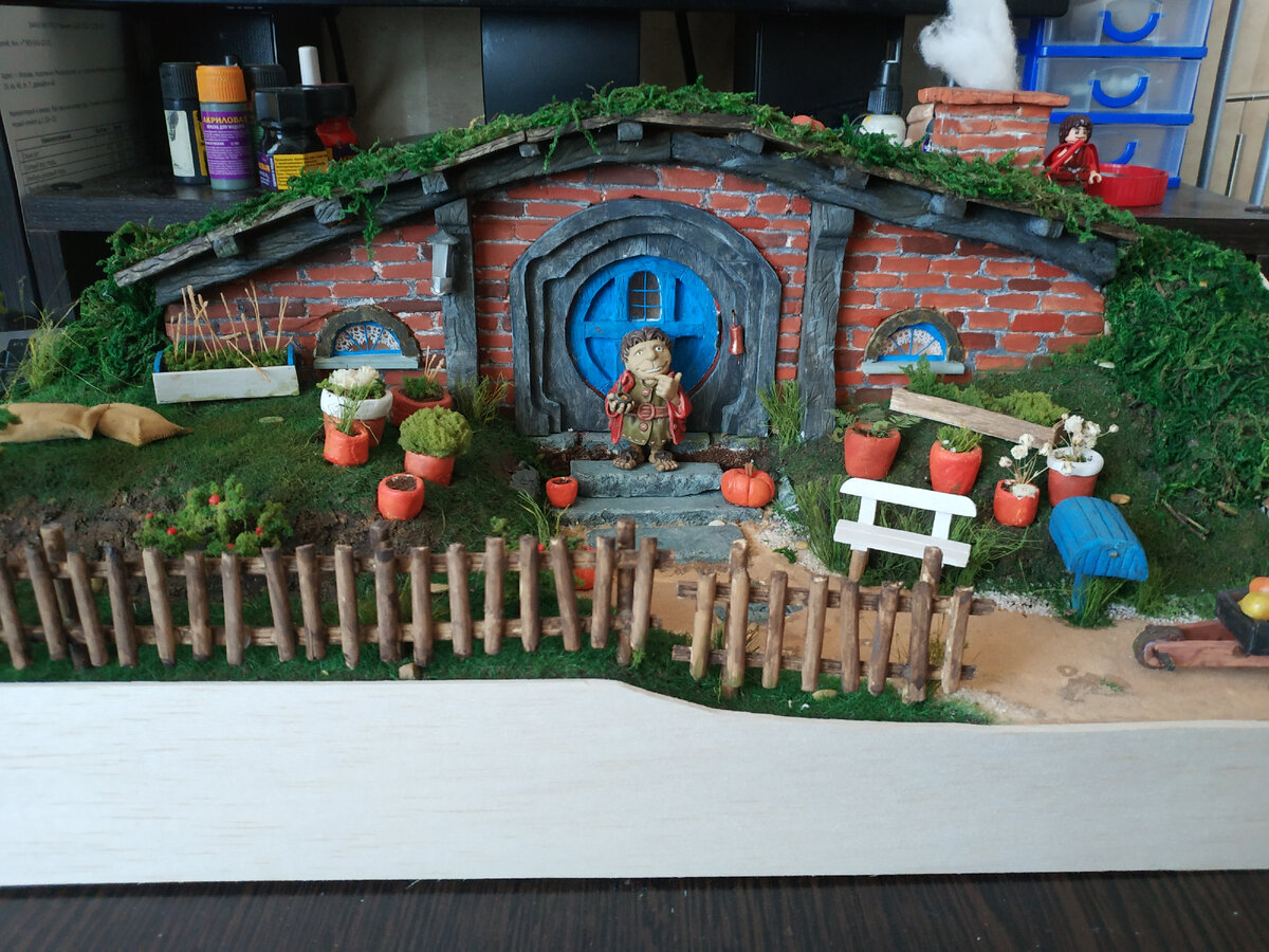 Жил-был в норе под землей хоббит. Не в какой-то там мерзкой грязной сырой норе, где со всех сторон торчат хвосты червей и противно пахнет плесенью а вот в этой норе. Здравствуйте! Хочу рассказать вам о процессе создания диорамы посвященной сказочной местности из повести профессора Джон Рональда Руэла Толкина "Хоббит" Это место - Хоббитон! Прототипом для диорамы послужила вот эта фотография: Расположено это место в городе Матамата, на Северном острове Новой Зеландии. Я постарался сделать диораму максимально похожей на прототип. Масштаб диорамы я подбирал под фигурку из подделки конструктора Lego, потому что другой фигурки хоббита у меня пока не было. Создание диорамы началось с изготовления основания и самой норы. Основание склеено из трех слоев пенополистирола , что позволило мне в дальнейшем создать несколько уровней склона перед домом.