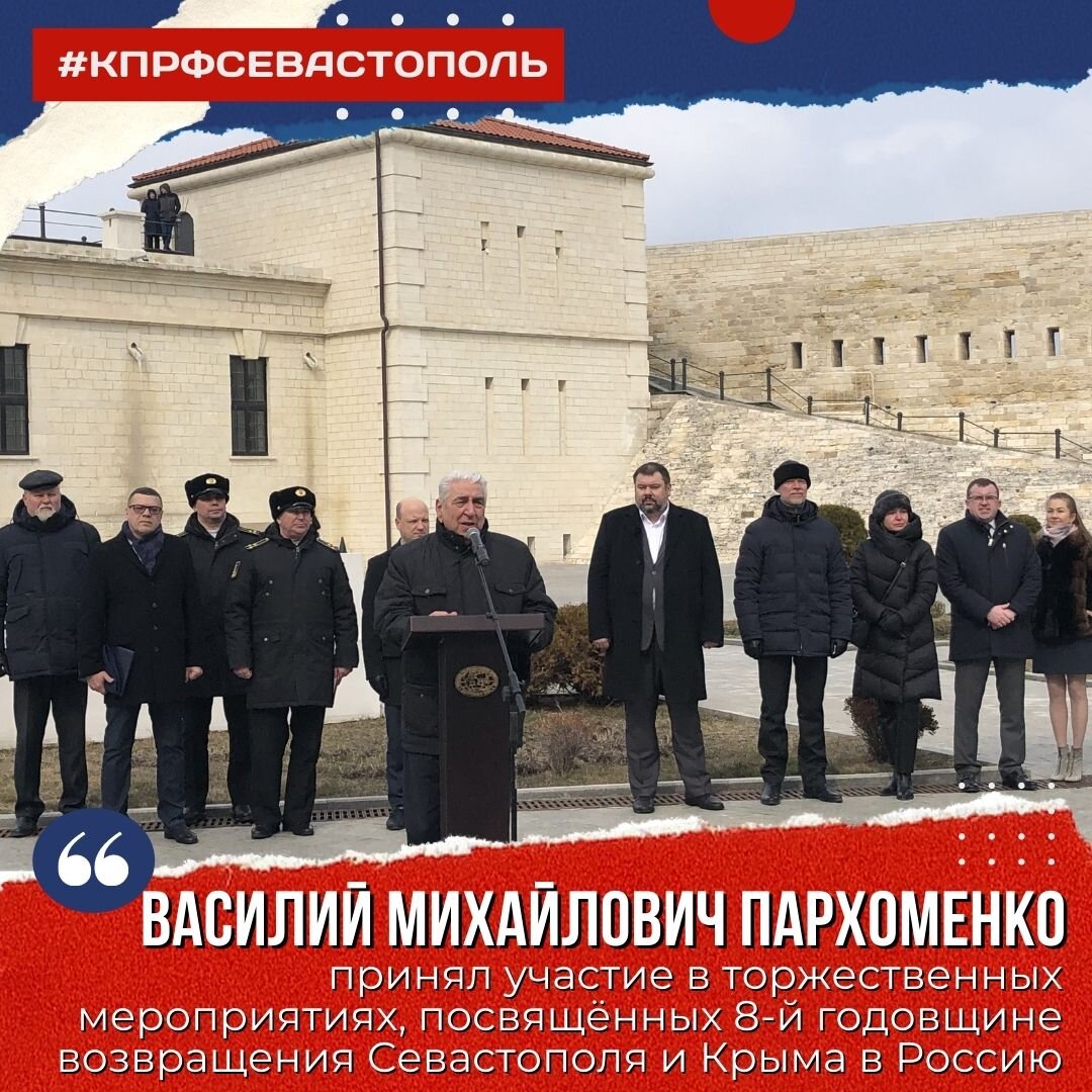 Первый секретарь Севастопольского ГК КПРФ, заместитель Председателя Законодательного собрания г. Севастополя Василий Пархоменко принял участие в торжественных мероприятиях, посвящённых 8-й годовщине возвращения Севастополя и Крыма в Россию.