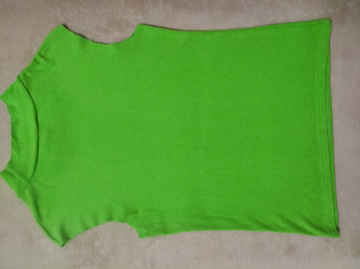 Продолжим переделку двух водолазок. После использования четырех рукавов для декоративного шарфика решила из оставшегося трикотажа сделать шарф для весенне-осеннего гардероба, т.е. для тепла (по прямому назначению). Из бежевой водолазки получилось два прямоугольника размером 48х30 см, которые сшила между собой с помощью плотной бумаги, так как при стачивании трикотажа в поперечном направлении происходит его растяжка. Затем разгладила шов и прострочила по нему швом зигзаг, чтобы в дальнейшем края не закручивались. У другой водолазки, в виду того, что растянулся не только воротник, но и зона вокруг него, пришлось обрезать больше ткани. Поэтому и прямоугольники получились меньшего размера. Если у бежевой водолазки воротник выбросила (он тонкий и больше износился), то у зеленой водолазки я его решила использовать для увеличения длины шарфа. Вставку воротника провела аналогично, как у бежевого шарфа соединила два прямоугольника. Главное, наметку сделать, так как трикотаж сложнее прошить (ос