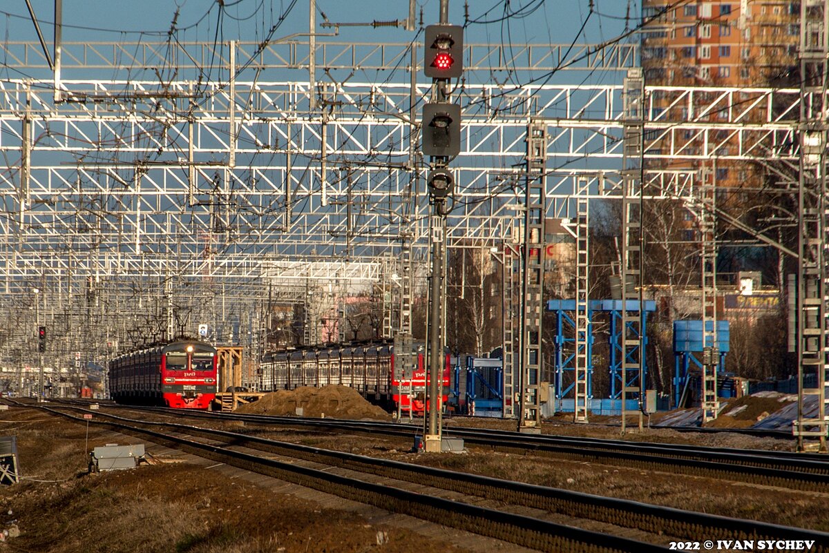 Сегодняшний обзор - вообще случайная величина на страницах канала-дневника "Записки от Ивана". Дело в том, что день 26 марта начинался сумрачно и ветренно. Потом вообще пошел противный мелкий сеящий обложной дождь. Короче, погода из серии "хороший хозяин собаку на улицу не выпустит". И тут... И тут к 18-00 внезапно сильным ветром разметало облака и Солнце рко осветило все вокруг. А тут еще надо было прогуляться по делам (да ладно, чего уж там - в магазин, за сахаром, ага ;)). Короче совпало все: свет, время и то что я победил (хоть и под воздействием насущной необходимости) свою лень. Надеялся я, конечно, на что-нибудь необычное, нестандартное, но - нет, в тот вечер на Горьковке (как и почти всегда) царил Его Величество #демиховский_монстр ЭД4М. Вот их-то, в предзакатных лучах, которые добавляют золотой краски (потому-то, собственно, и золотой час) сегодня и посмотрим. 1. Но для начала обратим внимание на строящуюся остановочку МЦД Ольгино. Кроме временной деревянной платформы появили