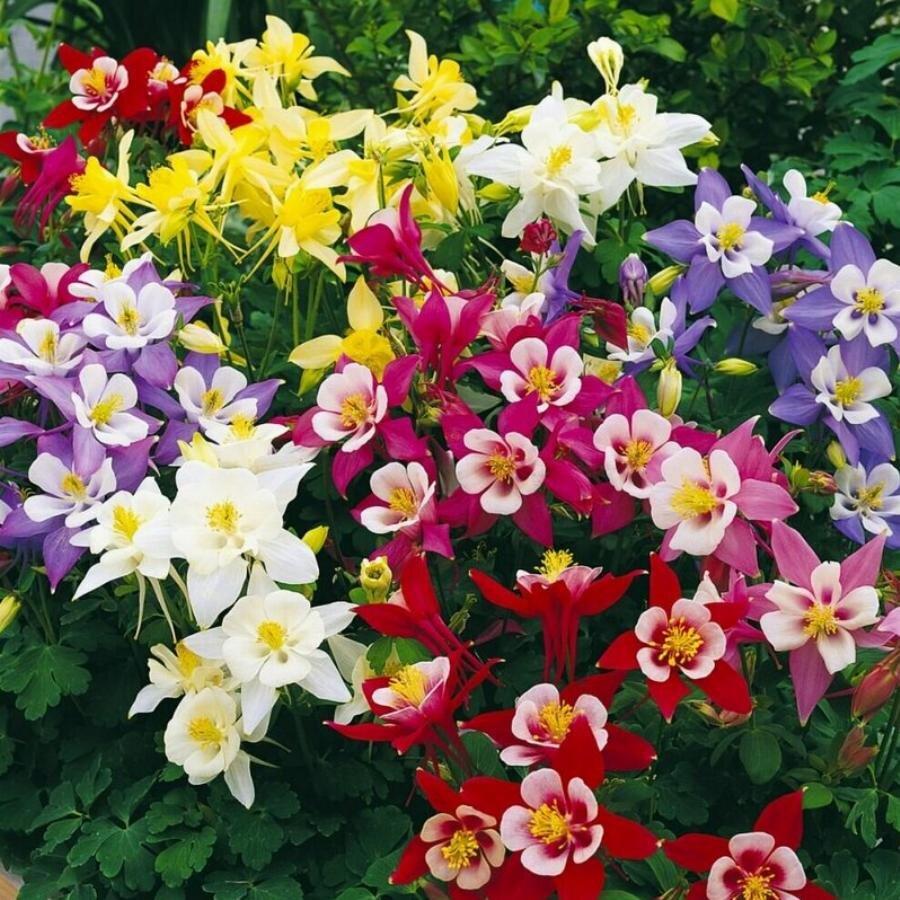 Высота растений в основном до 1 м, хотя есть очаровательные маленькие белые, голубые и бело-голубые «горочные» аквилегии не выше 30 сантиметров. Они цветут в мае-июне, тоже любят влагу. Цветки со шпорцами бывают однотонными либо двухцветными чистых окрасок: белые, желтые, кремовые, розовые, голубые, сиреневые, красные.