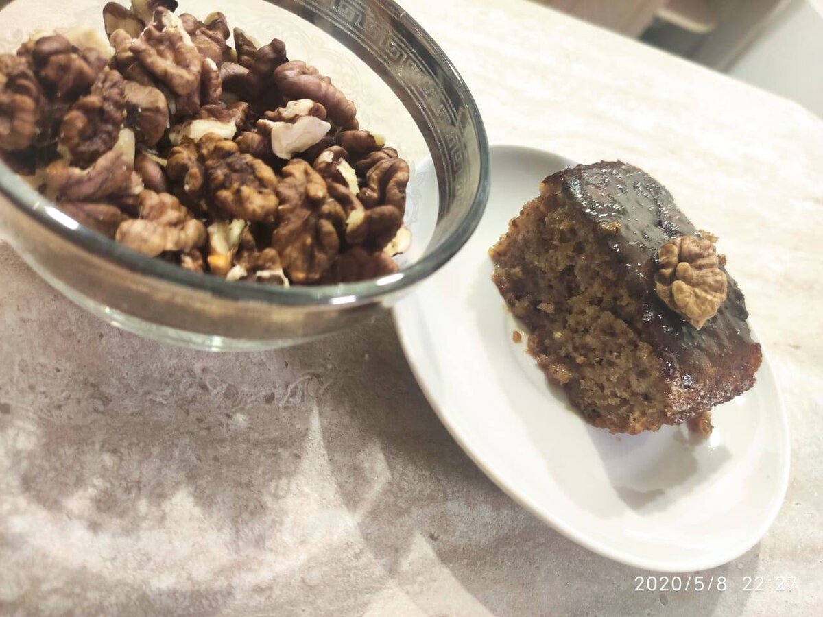 Очень вкусный рецепт кекса, получается пропитанный, сочный, нежный со вкусом варёной сгущёнки и грецких орехов 🤤 #кекс #выпечка #кчаю #кекскоровка #сгрецкиморехом #варенаясгущенка Ингредиенты: яйца, сахара, муки, разрыхлителя, варёной сгущёнки, грецких орехов, Дополнительно, молока Способ приготовления: Взбиваем яйца, добавляем 3/4 банки сгущёнки и хорошо взбиваем. Добавляем сахар, разрыхлитель и просеянную муку, перемешиваем. Орехи измельчаем в блендере и добавляем в тесто, перемешиваем. Форму смазываем маслом и выпекаем кекс при 150°С 30 мин (ориентируйтесь по своей духовке) Пока готовится кекс, делаем к нему соус. Молоко подогреваемой, но не кипятим, добавляем к нему оставшуюся часть варёной сгущёнки, хорошо перемешиваем. Готовый кекс достаем из духовки и протыкаем зубочисткой много раз. Сверху заливаем нашим соусом и украшаем по желанию. Даём постоять час, чтобы пропитался. Можно подавать к чаю или кофе 😊