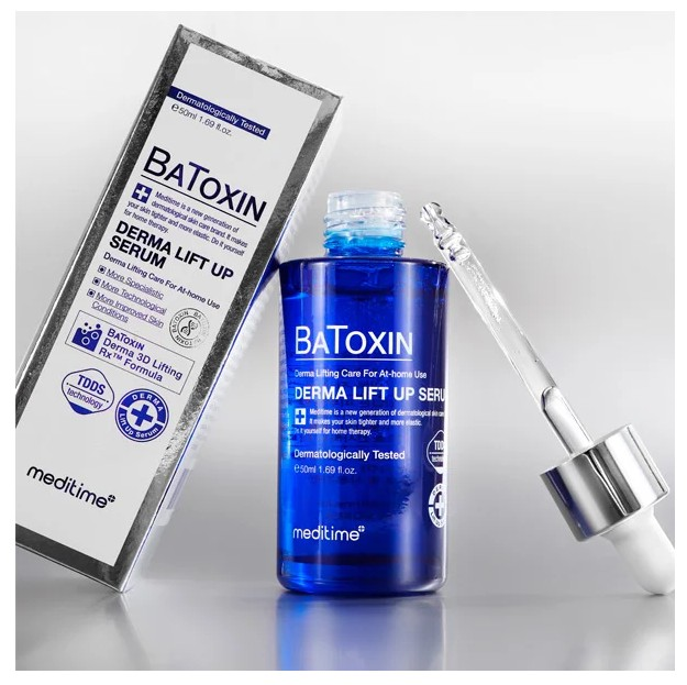1) Лифтинг-сыворотка с пептидами и ботулином Meditime Batoxin Derma Lift Up Serum (50 мл) обладает выраженный антивозрастным действием: разглаживает морщины, устраняет дряблость, подтягивает овал лица. Сыворотка стимулирует синтез коллагена и эластина, повышает упругость кожи, восполняет недостаток влаги.