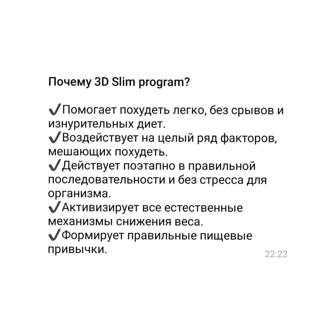 ЗАКРЕПИТЬ ПОЛУЧЕНЫЙ РЕЗУЛЬТАТ РАЗ И НАВСЕГДА!!!! #стройноетело легко ли это? 😫А возможно ли думают многие!!! 🤗Девочки!Спокойно!Есть проверенный способ! 😎🔥СЕЙЧАС РАССКАЖУ!!! ✅3D SLIM✅ ☝Есть такая программа которую я изучала дольше обычных😄 🤔И прям таки влюбилась в её действие и результаты которые она даёт!❤И конечно же приобрела её себе!))) 🙌🥺Моя проблема в том что,после рациона питания и сброшеного веса в некоторых местах назовём их "ЖИРОВЫЕ ДЕПО" жир убрать возможно при помощи спорта,но я чувствую по себе что я пока не готова)))😫А ещё я заметила ,что видимо ловлю зону комфорта в стройном весе и начинаю опять набирать даже при редких погрешностях!🙌 🙌Мне это надоела и я обратилась за помощью к данной программе!!! 👇И вот почему она подойдёт каждому!🙌И не важно сколько у тебя лишнего веса 5-ть или 50-ть кг! 👇Эта программа твой вариант✅ ♻️Абсолютно натуральные компоненты в составе!♻️ 👇ДАЮТ МОЩНЕЙШИЙ РЕЗУЛЬТАТ👇 ✅Способствует устранению застоя жидкости в тканях и