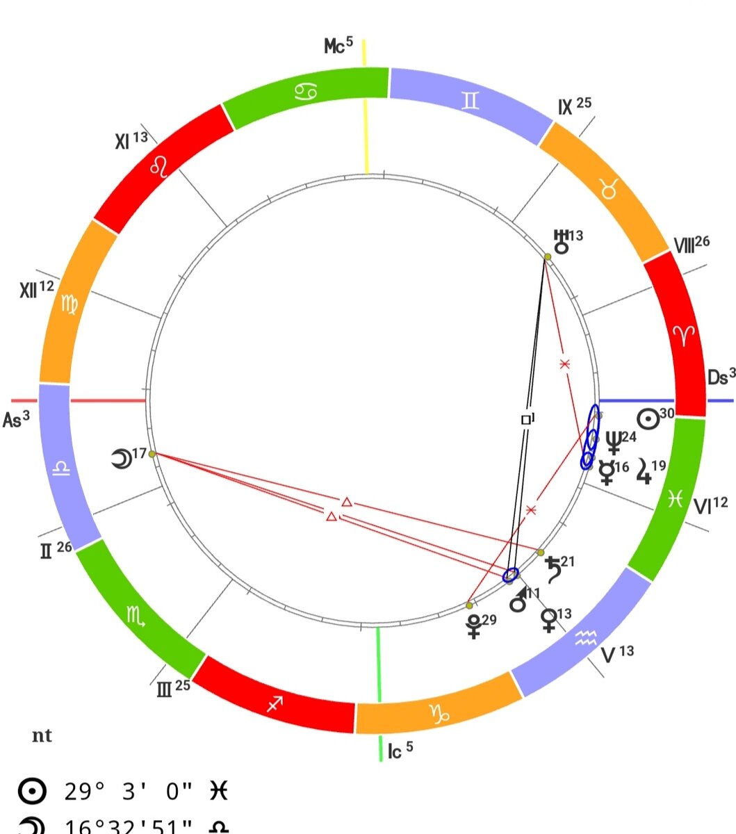 Натальная карта - это схема звёздного неба на момент нашего рождения. В ней зашифрована информация о личности, качествах.