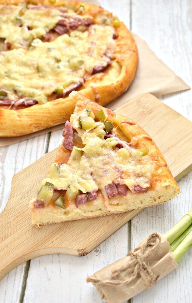 9.Вкусная пицца готова, угощайтесь! Из оставшегося теста готовим еще одну пиццу.