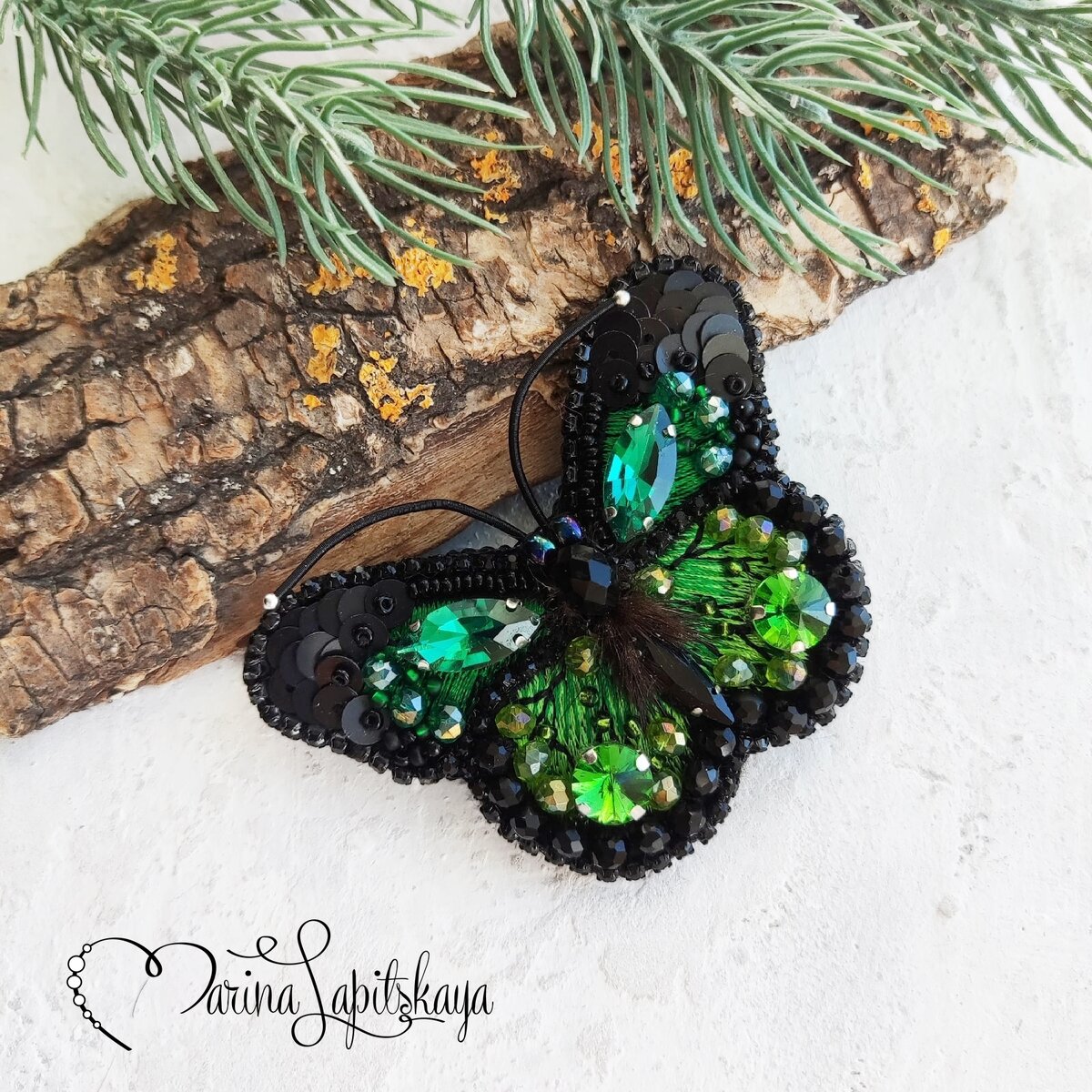 Как цветные фантики. Г. Ряскина Размер готовой броши 7 х 5 см Для изготовления броши понадобятся: ▪️ термонаклейка "бабочка", ▪️фетр, ▪️стразы "наветт" изумрудного цвета 7х15 мм - 2 шт, ▪️стразы "риволи" зеленого цвета 8 или 10 мм - 2 шт, ▪️страз "наветт" черного цвета 6х12 мм - 1 шт, ▪️рондели зеленого, изумрудного, черного цветов 3х4 мм, ▪️рондель 4х6 мм черного цвета - 1 шт, ▪️ пайетки 4 мм черного цвета, ▪️пайетки 2 мм черного цвета для обшивки края, ▪️ бисер №10, ▪️кусочек черного меха (при желании), ▪️ пины 5 см - 2 шт, ▪️канитель черная мягкая, ▪️стразовая цепочка 2 мм черного цвета, ▪️картон, ▪️клей "Момент-кристалл", ▪️нитки капроновые №50, ▪️кожа для изнанки, ▪️основа для броши 4 см Ссылки на материал