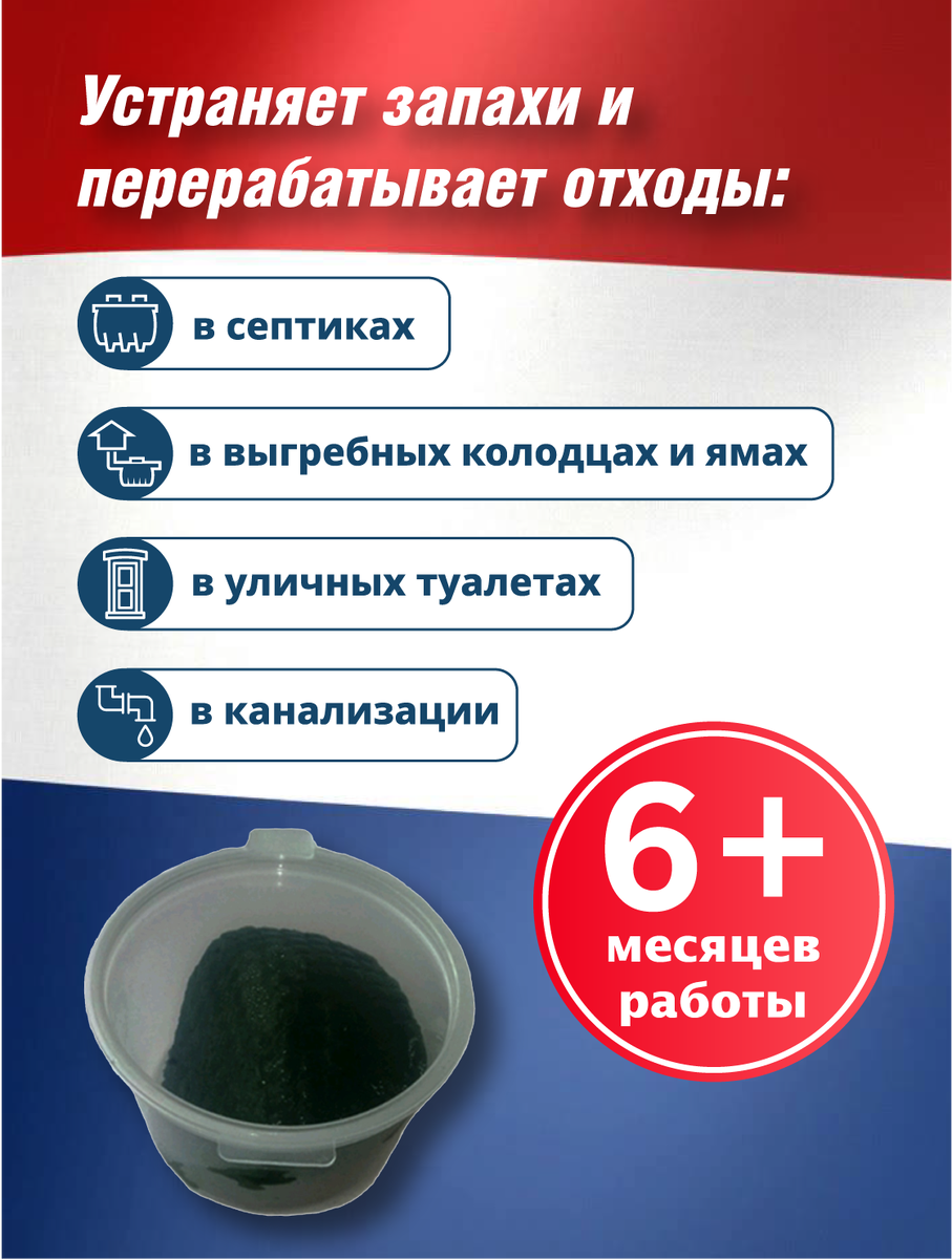 Микробиологический комплекс MicroCat-BioPop создан совместно ведущими специалистами-микробиологами из США и Нидерландов для устранения неприятных запахов и разложения органики в септике или локальных очистных сооружениях коттеджа или дачного дома, в выгребных ямах и уличных туалетах. Работает по принципу "Установил и забыл о проблемах". Срок службы – от 6 до 12 месяцев, что эквивалентно 6 обычным таблеткам для септиков, но с расширенными свойствами ! MicroCat-BioPop представляет собой медленно растворимую массу микроорганизмов зеленого цвета с легким запахом морских водорослей. Всё что требуется для правильной установки BioPop – открыть пластиковый контейнер и извлечь содержимое прямо в септик (выгребную яму, уличный туалет). Остальную работу на себя возьмут специально адаптированные непатогенные безопасные микроорганизмы. Даже после откачки септика (выгребной ямы, уличного туалета), размножившееся микроорганизмы останутся внутри и продолжат свою работу, обеспечивая ваш комфорт и безоп