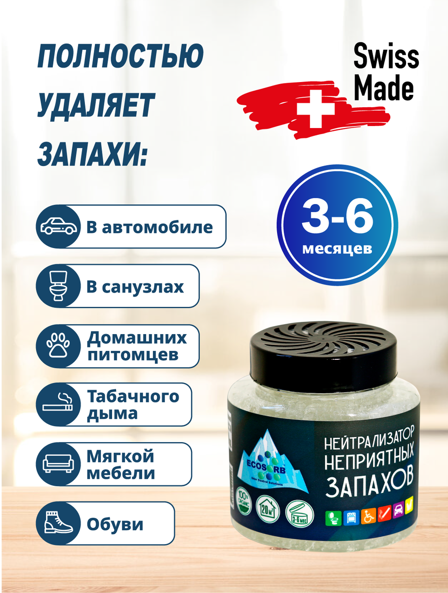 Уникальный швейцарский профессиональный Гель ECOSORB для нейтрализации и удаления неприятных запахов. Стационарная модель для активной работы на площади до 20 м2 более 3 месяцев. Является бытовой версией гелей-нейтрализаторов Ecosorb для коммунального хозяйства и промышленности. Область применения: - домашние и общественные санузлы; - кухня (устраняет запахи, появившихся при приготовлении пищи); - нейтрализация запахов от биотуалетов домашних животных; - помогает устранить запахи при уходе за лежачими больными и инвалидами; - нейтрализация запахов в салоне автомобиля; - нейтрализация запаха табака; - в домашних условиях при занятиях покраской, выжиганием, пайкой и т.п. Преимущества геля Ecosorb: - состоит исключительно из эфиров растений; - биоразлагаемый, гипоаллергенный; - длительный срок работы (более 3 месяцев); - не маскирует неприятные запахи, как обычные освежители воздуха, а полностью их удаляет, оставляя в помещении запах чистоты и свежести; - очевидная замена привычного осв