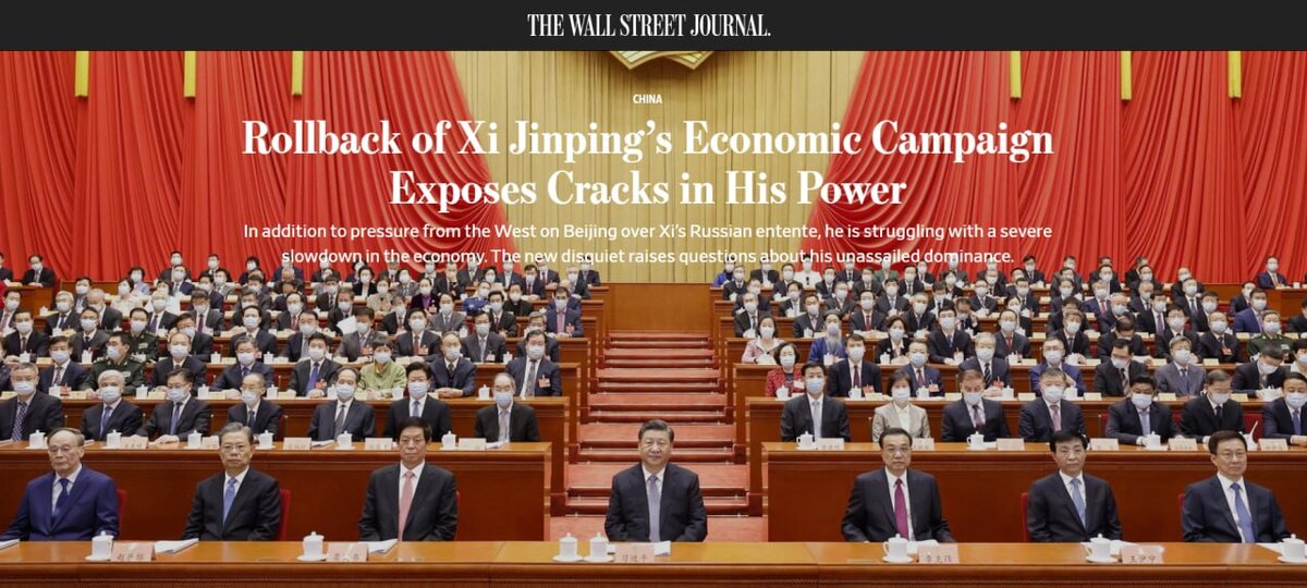 В WSJ опубликована интересная статья о Китае, которая называется «Свертывание экономической кампании Си Цзиньпина обнажает трещины в его власти». Не буду ее пересказывать, приведу лишь то, что, с моей точки зрения, важно в понимании того, насколько активно Китай будет помогать России. Положение Си Цзиньпина в китайском обществе в связи с перспективами его переизбрания на 5-й срок прочное, хотя в политическом смысле китайское государство более сложное, чем российское (там и сейчас идут дискуссии и присутствуют разные интересы разных властных групп). По словам WSJ, инсайдеры КПК говорят, что нет никаких сомнений в том, что Си Цзиньпин победит на съезде партии в конце этого года, нет никакого потенциального кандидата в преемники. И все же, как показано в статье, ключевые предвыборные инициативы Си в китайском обществе являются не такими уж бесспорными (он уже не кажется почти непобедимым), а о ряде ключевых экономических инициатив сейчас в Китае стараются меньше говорить, а сам Си дает