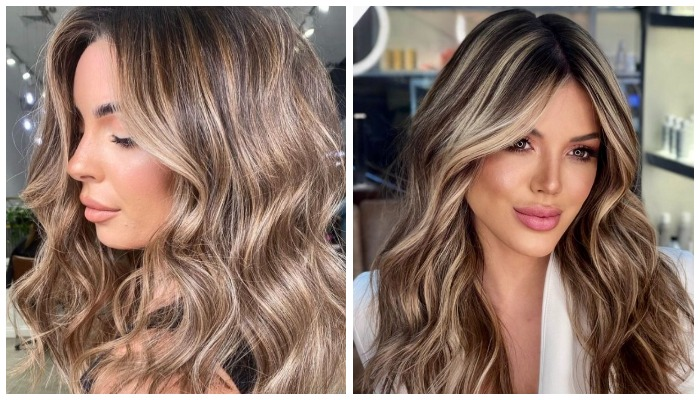 Шатуш пшеничного цвета + каштановый цвет волос — еще один невероятно красивый тандем, который делает волосы максимально ухоженными и блестящими. Эта техника окрашивания отлично подойдет тем, кто находится в поиске естественного оттенка, который бы освежал внешность.