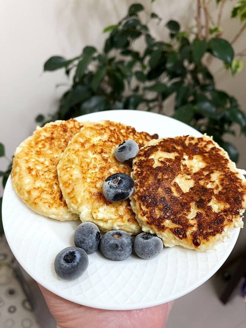 Очень нежные и невероятно вкусные сырники. Готовить ну очень быстро 👌 Ингредиенты: творога 9%, яйца, псиллума, разрыхлителя, ванилин по желанию, мука миндальная, кокосовое масло, заменитель сахара (стевия) или по вкусу Способ приготовления: Соединим творог и яйца тщательно перемешиваем. Если не любите крупные крупинки творога разомните вилкой. Всыпаем псиллум и даём немного постоять. Псиллум сделает своё дело. Далее всыпаем все остальные ингредиенты и тщательно перемешиваем до однородной массы. Получается не тугое но и не жидкое тесто. Из него можно лепить и оно держит форму. Если тесто жидковато то добавить немного муки. Из теста формировать шарики (примерно 12 шт) расплющить и выкладывать на разогретую сковороду с кокосовым маслом. Доводим (на медленном огне) до румяной корочки и переворачиваем. Даём остыть и наслаждаемся! Приятного аппетита 😋