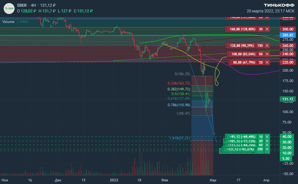 $SBER 😱 СбЕрУ ПрИшЁл ПоРшЕнЁк!!I 🖐 Всем привет. Рынок РФ закрыт, все сливают Россию, скоро чуть ли не деньги будут предлогать, лишь бы забрали! 😂 Что дальше?! - я пишу своё мнение! Задумка ЦБ РФ и поршенёк длч перекачки бабла - или цап-царап для избранных! 🧐✅ Фундаментал: Как вы заметили - полный КуЗнЕц! Только ленивый не пытается хоть за сколько-нибудь продать Россию (рынок акций РФ), в том числе и СБЕР! Цена доходила чуть ли не в считанные центы за бумаги на лондонской бирже. Отрицательных вещей много, помимо распрадажи - закрытие европейского и другого иностранного бизнеса, санкции, отсутствие возможности для новых технологий и дальнейшего развития. Из плюсов - Сбер в беде не бросят, и выделили деньги на его покупку, как и на весь рынок РФ - 1 триллион рублей! 👆 Риски крайне велики, ибо путин может всех переиграть в очередной раз. Так же, помню, один раз он говорил про концепцию своего Рая. Никто не знает, на сколько возможна Ядерная война - ну тогда всему кузнец!👆 В общем, ри