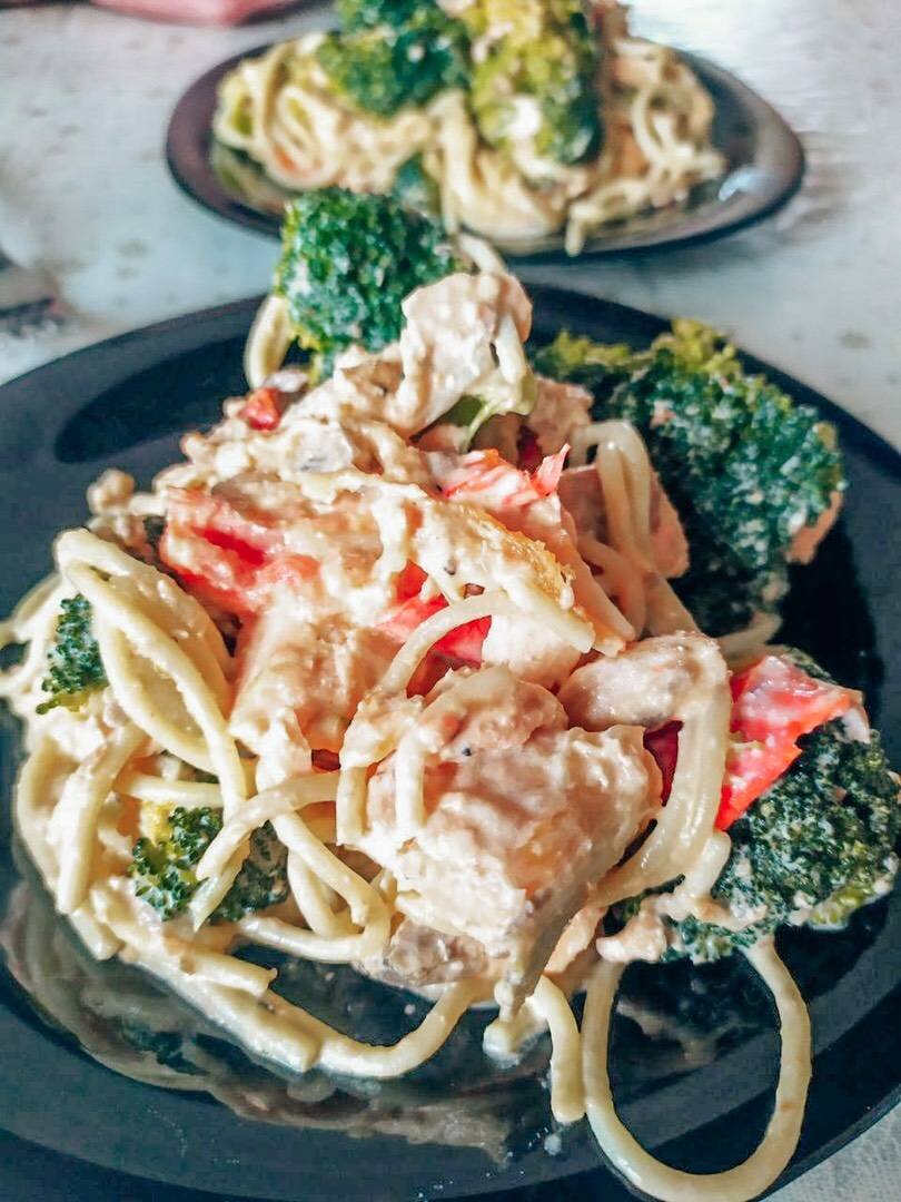 Вкусно, быстро и сытно накормить семью? Конечно - паста! Блюдо готовиться быстро, как впрочем и съедается! #паста #итальянскаякухня #пастамброкколи #пастасфорелью #пастасрыбой #меню Ингредиенты: форели, брокколи, помидор, спагетти, сушеный чеснок, соль, сливок, сливочного масла, оливкового масла Способ приготовления: Подготовьте необходимые ингредиенты. Макароны отвариваем до состояния al dente. Рыбу разрезаем на кубики и кладём на разогретую сковороду, обжариваем пару минут. Добавляем брокколи, разобранные на соцветия, на сковороду. Сразу же добавляем сливочное масло и обжариваем рыбу с брокколи 7-8 минут. Далее на сковороду отправляем нарезанные на четвертинки помидоры. Посыпаем чесноком и солью, тушим 5-7 минут. Вливаем в сковороду сливки и доводим до кипения на среднем огне. Спагетти перекладываем в сковороду и протушиваем с соусом 3 минуты. Добавляем оливковое масло и ещё раз перемешиваем. Готово!