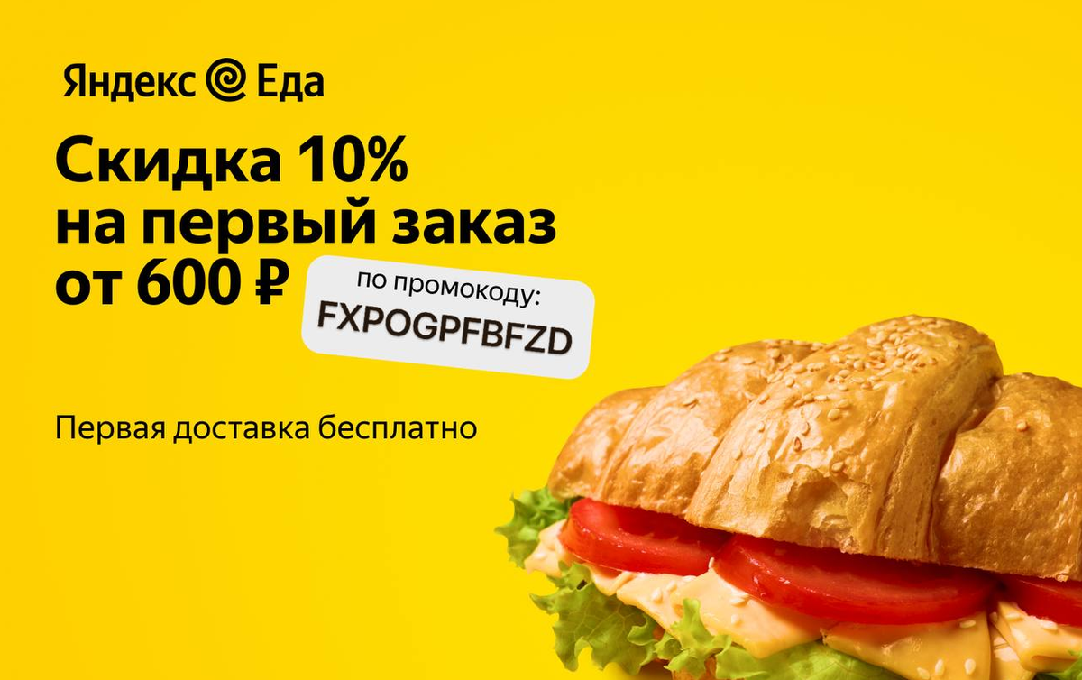 Получаем скидку 10% на первый заказ от 600₽ в Яндекс.Еде