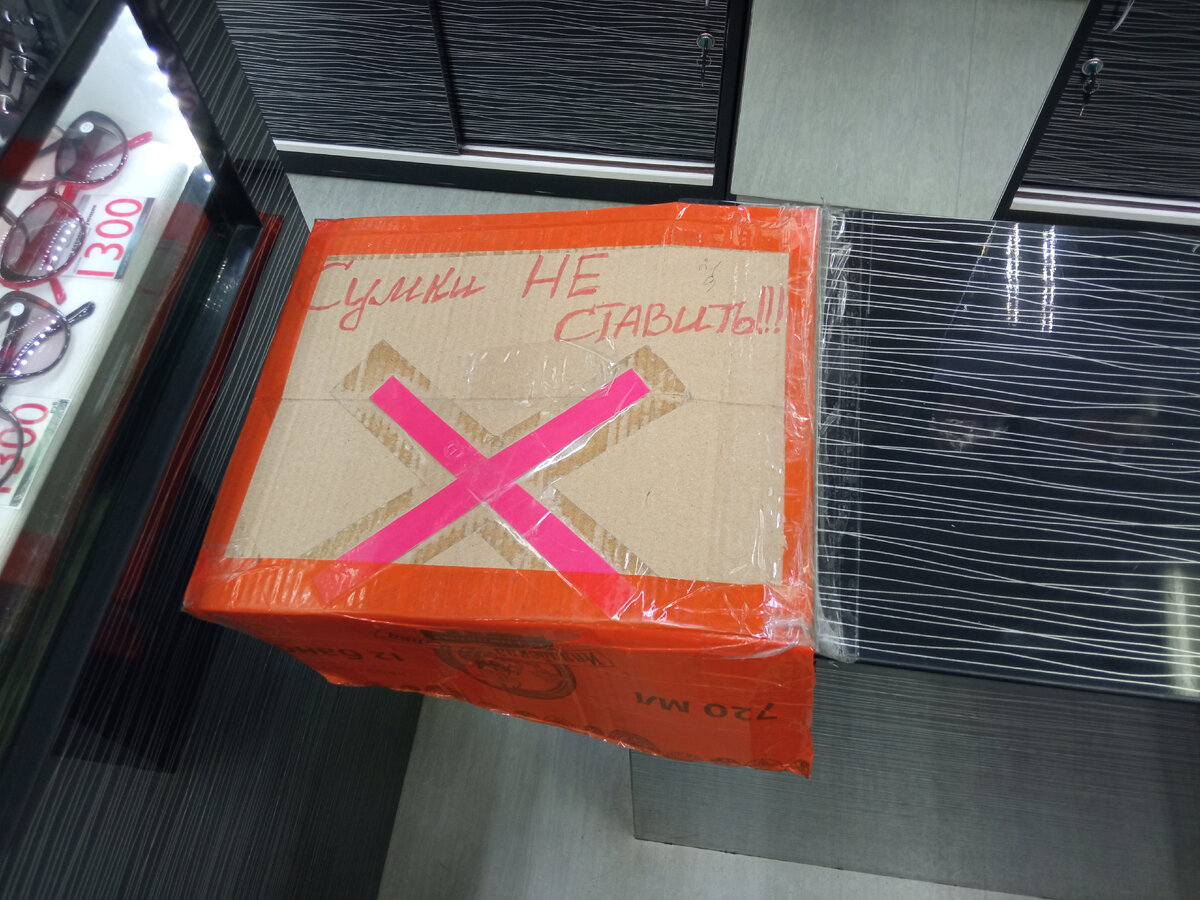 Мне интересно, как относятся к своим клиентам продавцы, написавшие эту табличку? Видимо, клиенты часто ставили (а может и сейчас продолжают ставить) свои сумки на эту тумбу. А куда их ещё поставить? В этом маленьком павильоне, расположенном в крытом рыночном комплексе, нет больше ни одной поверхности, на которую можно поставить сумку. А потребность в этом, видимо, есть. Если бы её не было, люди бы не ставили. Можно, конечно, поставить на пол, но видимо покупателям удобнее на какую-то поверхность, раз они это делают. Иными словами, запрещая ставить сумки, продавцы сами намеренно создают своим клиентам условия хуже, чем они могли бы быть без этого запрета. А может вообще запретить покупателям с сумками посещать вашу торговую точку? Или не только с сумками. Просто гоните всех в шею! Не придётся полы мыть, никто из этих противных покупателей ничего не сломает, не разобьёт витрину, не украдёт! (Ведь всякое бывает). Закрыть на лопату магазин и можно будет убрать эту неэстетичную табличку пр