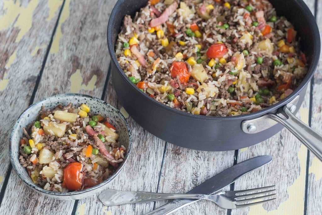 Мой рецепт вкуснейшего блюда из риса с говядиной, беконом, ананасами, помидорами и еще много всего вкусного. Готово всего за 20 минут! Иногда ужин просто должен пройти очень быстро. У вас не всегда есть океаны времени, чтобы стоять на кухне, и если вы хотите избежать слишком большого количества еды на вынос, вам может быть трудно добраться до готовки. А вот и мой рецепт вкуснейшего блюда из риса с говядиной, на приготовление которого уходит всего 20 минут! Вряд ли станет легче! ИНГРЕДИЕНТЫ ВОТ КАК ЭТО СДЕЛАТЬ