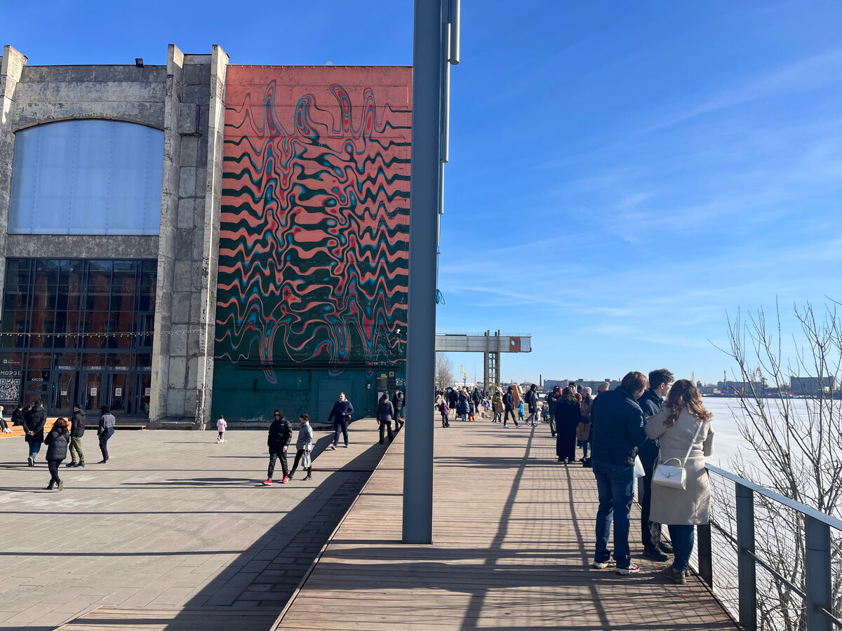 На очереди ещё одно классное общественное пространство в Петербурге, которое нельзя пропустит, поскольку оно является основным притяжением горожан на Васильевском острове. В этой статье я вам покажу Севкабель порт — совсем не стыдное, а местами и мрачное место в Петербурге. Васильевский остров является местом, где был и является местом сосредоточения цехов крупных заводов в Петербурге. Но со временем это всё утрачивается. Вот вам и пример того, как из одного цеха кабельного завода сделали достойное общественное пространство для людей. Удивительно: завод поддержал инициативу и администрация разрешила на своём участке открыть новое пространство для всех желающих. А это главное и самое большое здание, вернее его боковая часть. Эти красивые и эпичные граффити были нарисованы изначально. А это необычная и крутая детская площадка. Обратите внимние, что она закрытого типа: ни дождь, ни снег — не попадает. Правда родители вынуждены сидеть на открытом пространстве, но хоть и лавочки для них п