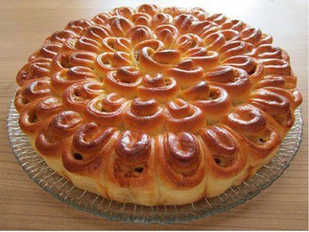 МЯСНОЙ ПИРОГ "ХРИЗАНТЕМА" Ингредиенты Мясной фарш (свинина, говядина) - 500 г. Лук - 1 шт. Чеснок 1 зубчик Вода - 100 мл. Кубик куриного бульона - 1 ч.л. Сыр - 140 г. Сливочное масло - 30 г. Соль, красный и черный перец - по вкусу. Для теста: Молоко - 125 мл. Кефир - 125 мл. Дрожжи сухие - 1 пакетик (7 г.) Сахар - 1 ст.л. Соль - 1 ч.л. Яйцо - 1 шт. Мука - 500 г. Растительное масло - 6 ст.л. Способ приготовления Шаг 1 В молоке распустить дрожжи, добавить сахар и отставить в сторону на 15-20 минут, чтобы дрожжи ожили. Шаг 2 Смешать молоко, кефир, сахар, соль, яйцо, растительное масло. Хорошо перемешать, добавить дрожжи, просеянную муку и замесить мягкое тесто. Накрыть миску с тестом плёнкой и поставить в тёплое место примерно на 1 час. Затем тесто обмять и разделить на две равные части. Шаг 3 Одну часть убрать снова в миску и накрыть кухонным полотенцем. Шаг 4 Вторую часть теста раскатать в пласт толщиной в 3-4 мм (стол подпылить мукой при необходимости). Шаг 5 Выдавить из теста