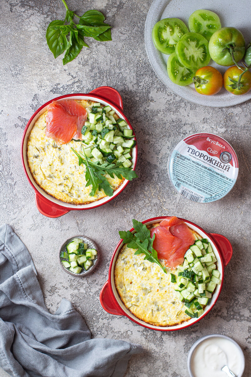 Запеканка с творогом, творожным сыром и зеленью