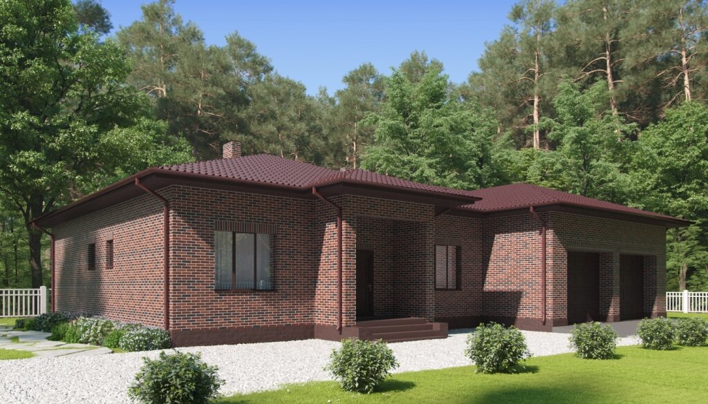 Наружная отделка – облицовочный кирпич. Строительство дома начинается с проекта. Только имея полный и подробный проект будущего дома можно быстро и грамотно построить его без ошибок, накладок и переделок. Проект поможет наиболее точно представить внешний вид дома, планировочные решения, расход требуемых материалов и конструктивные решения фундаментов, стен, перекрытий и крыши. Проект дома разработан специалистами в области проектирования и строительства загородных домов, коттеджей с учетом ГОСТ и СНиП. Проект состоит из разделов: АР (архитектурные решения), КР (конструктивные решения) и 3D-визуализации. Выполнен на бумажном альбоме фор