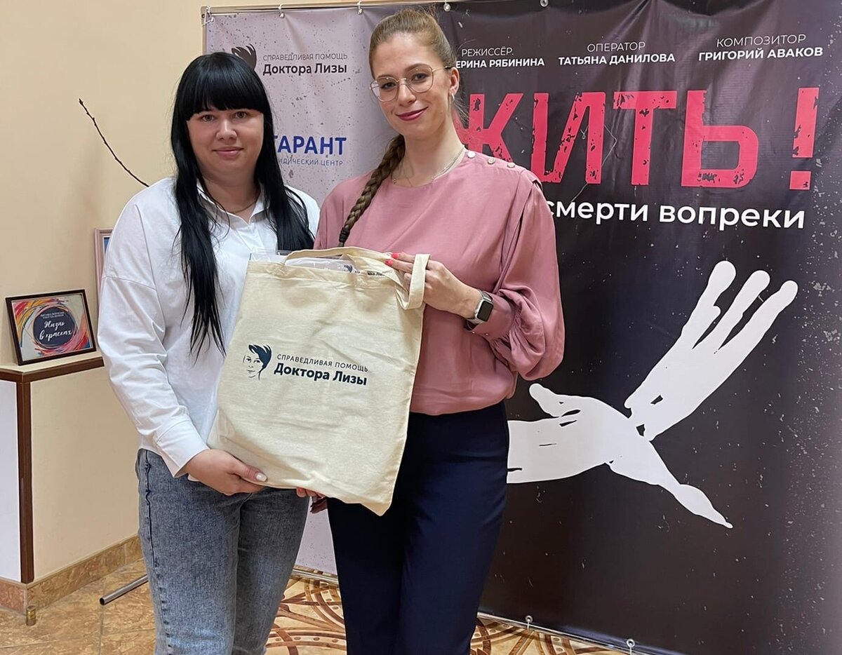 В культурном центре «Мир» города Тамбова состоялся закрытый показ фильма «Жить! Войне и смерти вопреки», который посетили волонтеры Мичуринского волонтерского корпуса. Представленная лента повествует о буднях и о гуманитарной миссии центра «Справедливая помощь Доктора Лизы», основанного в 2007 году врачом паллиативной медицины Елизаветой Глинкой.
