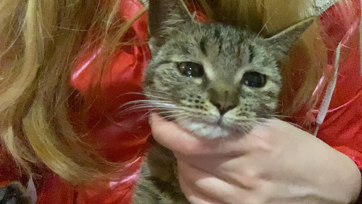 Еще котёнком я нашла Британскую кошечку Милу на улице. Оголодавшая и тоненькая как тетрадный листочек, она сидела «с ногами» в собачьей миске, пытаясь разобраться с крупными гранулами корма. По виду, кошечке было месяца 4. Не смотря на общую худобу, у кисульки была круглая как блинчик, плоская мордочка и малюсенькие ушки. В том, что она Британочка, сомнений не возникало. Понимая, что сейчас могут вернутся «хозяева» будки - местные бездомыши, я отозвала кошечку в сторонку и пощипала ей курятины, которую несла собакам. Наевшись досыта, моя новая знакомая, как служебная овчарка, последовала за мной, громко мурча. Еще некоторое время мы кружили по дворам, я надеялась на то, что она все-таки потеряшка и куда-нибудь меня приведет, но нет. Киса ходила за мной по пятам, а во время остановок, терлась о джинсы и обвивала мою ногу ногу хвостом, давая понять, что не хочет расставаться, а в глазах ее стояли слезы (1 фото) как у котика из «Шрека» Было уже очень поздно, но я не понимала как остави