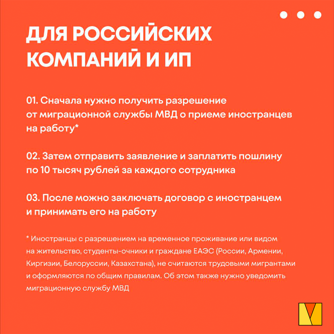 Российские компании активно набирают к себе на работу трудовых мигрантов. По данным на май 2020 года численность приехавших на заработки иностранцев составила 4,12 млн человек. Кто-то подбирает более квалифицированных специалистов, а кто-то, наоборот, экономит на рабочей силе. Но не все это делают легально, ведь сотрудникам нужен патент, а компаниям — разрешение на трудоустройство иностранцев. Рассмотрим по порядку, что необходимо сделать, чтобы принять на работу иностранца и не получить штраф. Иностранцем также необходимо получить ряд документов: разрешение на временное проживание или видом на жительство; ИНН; патент или документ, подтверждающий статус самозанятого. Наймикс работает с самыми разными исполнителями: мы поддерживаем все гражданства и договоры ГПХ. Мы всегда готовы проконсультировать вас по преимуществам гибкого найма. #самозанятыеграждане #самозанятые #налогисамозанятые #мойналог