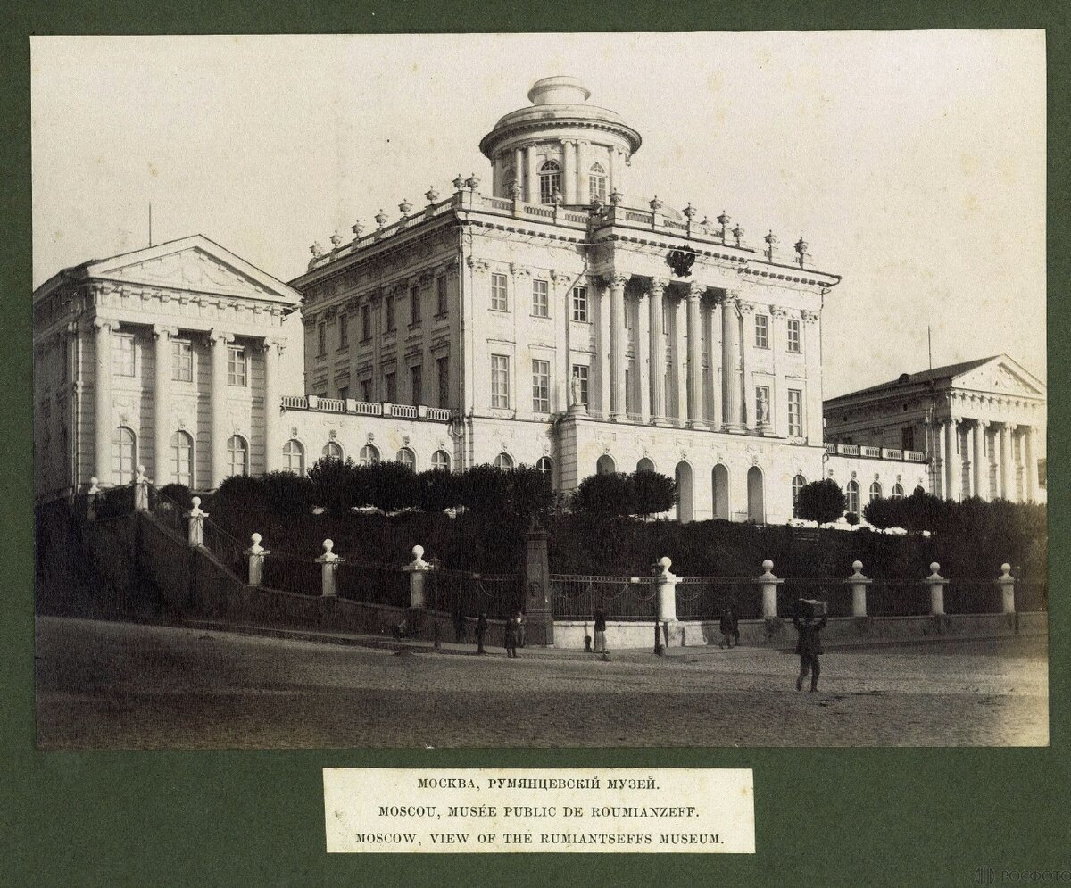 У музея — предшественника Ленинки было странное название: Московский публичный и Румянцевский музеи. Так сколько музеев уживалось в Доме Пашкова? Один, два или даже больше? Румянцевский музеум — родом из Петербурга. Тридцать лет сравнительно «скромное» (28 тысяч томов) книжное собрание прозябало в тени великолепной Императорской публичной библиотеки. Несколько статуй, картин и других предметов — художественная часть собрания семьи Румянцевых — конечно, не шли ни в какое сравнение с богатствами Эрмитажа. Посетителей было немного, финансирование не находилось, здание на Английской набережной обветшало, судьба музея казалась туманна. Решение нашлось благодаря московским деятелям культуры — «локомотивом» переселения стал попечитель Московского учебного округа Николай Исаков. Главным образом его стараниями Румянцевский музей перекочевал во второй город империи, где был встречен с огромным энтузиазмом. Ещё бы — ведь это был первый по-настоящему общественный музей и первая публичная библиоте