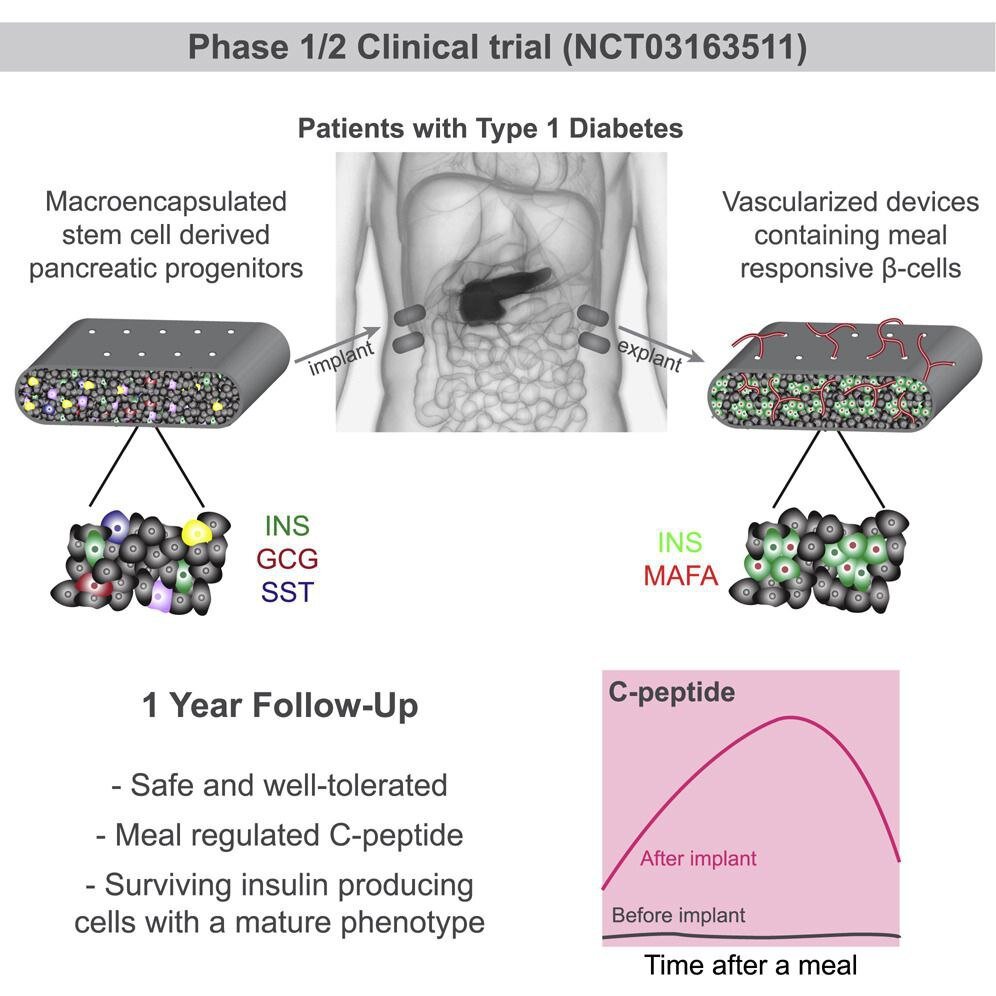 #doc2_news ‼️КАНАДСКИЕ УЧЕНЫЕ ИМПЛАНТИРОВАЛИ КЛЕТКИ ПОДЖЕЛУДОЧНОЙ ЖЕЛЕЗЫ , ВЫРАЩЕННЫЕ ИЗ СТВОЛОВЫХ КЛЕТОК, 26 ПАЦИЕНТАМ С САХАРНЫМ ДИАБЕТОМ 1 ТИПА.‼️ ➡️При сахарном диабете 1 типа организму недостает инсулина, потому что разрушаются бета-клетки поджелудочной железы, которые производят этот гормон. Восполнить погибшие клетки и подсадить больному новую поджелудочную железу врачи пытались еще 60 лет назад: первый донорский орган пересадили в 1960-х годах, а в 1970-х годах — отдельные островки поджелудочной железы. Однако найти донорский материал было и остается непросто, поэтому ученые продолжили искать ему замену. ➡️Сразу несколько исследовательских групп для этого культивировали стволовые клетки, чтобы затем превратить их в клетки поджелудочной железы и подсадить больным диабетом. Исследователи год наблюдали за 26 пациентами, которым имплантировали клетки поджелудочной железы, выращенные из клеток энтодермы. Имплантаты им вживили под кожу и сопровождали лечение иммуносупрессивной тер