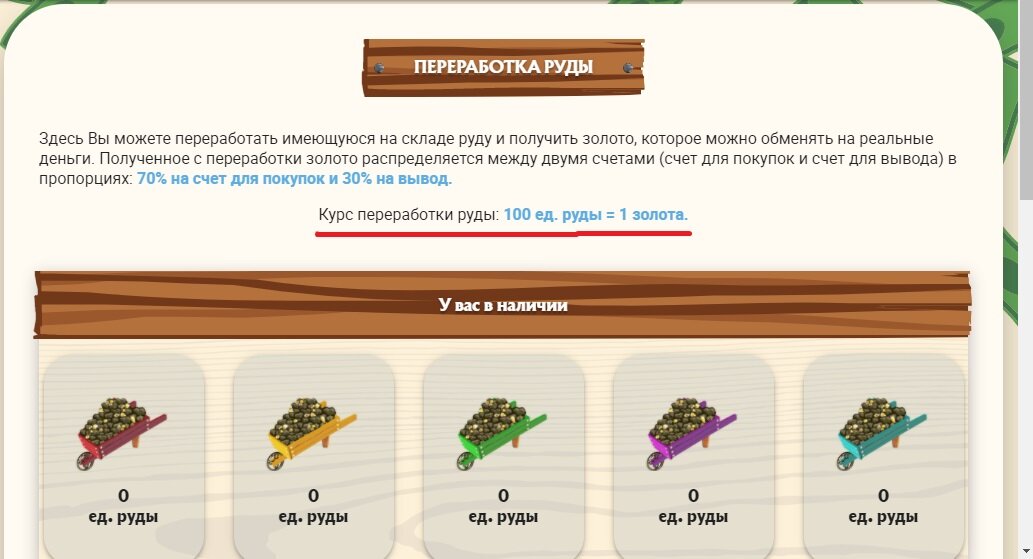 Чтобы ответить на этот вопрос, перейдем к расчетам. Курс конвертации руды во внутреннюю валюту: А курс внутренней валюты к рублю здесь: Чтобы заработать 200руб/день нужно 200х100=20 000 золота Теперь рассчитываю, сколько для этого надо гномов. Я не беру "работников" с низкой производительностью. Самый дорогой гном Профи зарабатывает 9 650 руды в час. Умножаем это число на 24 часа: 9 650х24 = 231 600 руды Профи добудет за сутки. Это 2 316 золота. Мне нужно 20 000 золота. Делю 20 000:2 316= 8,6. Т. е. мне нужно приобрести 9 гномов Профи. Один такой гном стоит 400 000 (4000руб): 400 000х9= 3 600 000 золота Сколько же это в рублях? 3 600 000:100 = 36 000 руб. Гном Бывалый зарабатывает 1 920 руды в час. Умножаем это число на 24 часа: 1 920х24 = 46 080 руды Бывалый добудет за сутки. Это 460,8 золота. Мне нужно 20 000 золота. Делю 20 000:460,8= 43,4. Т. е. мне нужно приобрести 44 Бывалых. Один такой гном стоит 100 000 (или 1000 руб): 100 000х44= 4 400 000 золота Сколько же это в рублях?