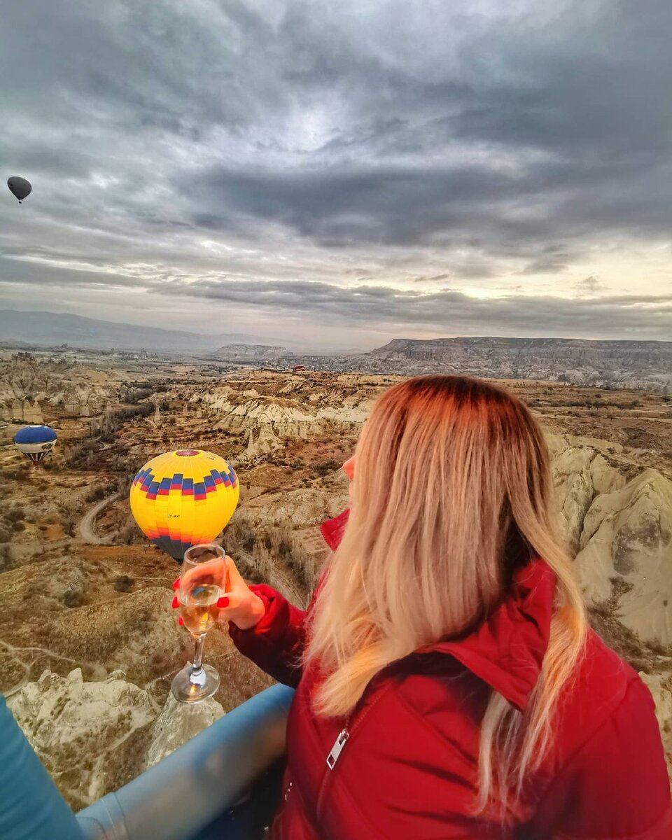 ⠀ Не зря говорят бойтесь своих желаний, они могут исполниться. Одно из моих давних желаний исполнилось в самый неожиданный момент, и я могу смело назвать это мгновенье, а вернее почти полтора часа - одними из самых волшебных моментов этого года. Я наконец-то совершила полет на воздушном шаре. Передать всю бурю эмоций и ощущений, в нескольких словах просто нереально, это тот случай, когда лучше один раз попробовать, чем сто раз услышать. Поэтому поводу, я - не пьющий человек, даже выпила шампанского, хотя была и ещё одна причина, нет, не страх, на высоте почти киллометр в первый день зимы было совсем не жарко. ⠀ О полете на шаре я мечтала долго, ещё до того как моя нога первый раз ступила на землю Каппадокии. В Каппадокию я езжу не первый год, но полёта на шаре побаивалась, у меня нет страха высоты, напротив я её обожаю, но из-за проблем с ногой боялась приземления. Но, наверно бы, несмотря на страх, как всегда последовала бы за мечтой, но на полёты всегда была очередь, стоили они до к