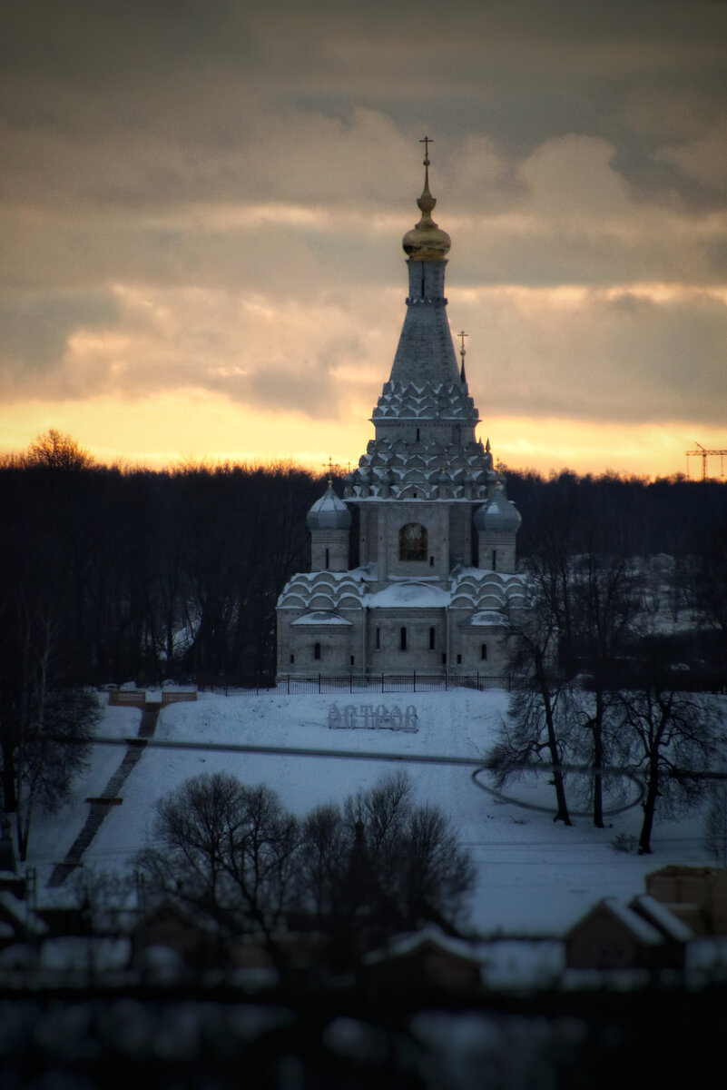 На самой высокой точке села Остров стоит необыкновенной красоты храм Преображения Господня. Об истории основания Преображенской церкви известно совсем немного. Построили при Иоанне Грозном в 16 веке и сам царь здесь бывал. Несколько десятилетий спустя, в Смутное время, храм был разорен поляками. Но его быстро восстановили. Любил бывать в Острове и почти всегда посещал Преображенский храм царь Алексей Михайлович. Церковь представляет собою высокое белокаменное здание. Его центральный купол возвышается на 40 метров. Остальные двенадцать главок находятся в основании шатра храма и окружены ярусами красивых кокошников. Два примыкающих придела выполнены в Псковском архитектурном стиле, и образуют единое целое с основной постройкой. В старину церковь играла важную защитную роль. На самом верху, под крестом был организован наблюдательный пост. Поднимались на него по узкой винтовой лестнице внутри шатра храма. И если неприятель был близко, подавался знак дымом, который видели в Москве. Эта ле