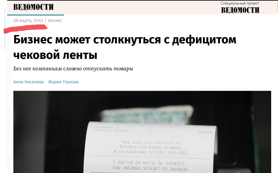 Как выяснилось, резко подорожала и начала пропадать у поставщиков чековая лента.