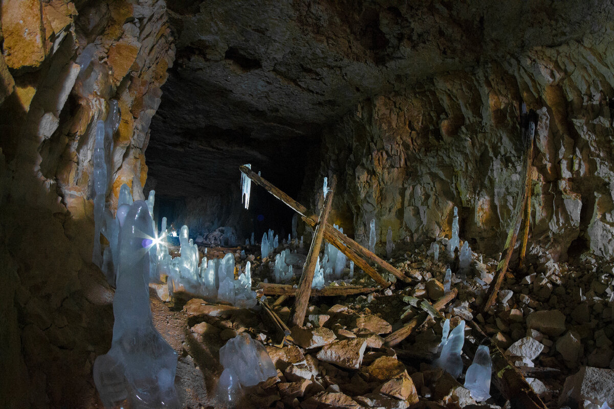 Почти конец марта на дворе, а зима не спешит отступать. Радует, что солнышко начинает пригревать, на улице становится теплее и как же не отправиться на прогулку за город в единственный выходной, да ещё и в хорошую солнечную погоду! А направляемся мы в любимый оставленный людьми карьер, о котором речь заходила в одной из прошлых публикаций. Спустившись на самое дно, благо лишь карьера, глаза цепляются за характерную "дыру" в горной породе, очень похожую на вход в недра горы. Немедленно направляемся к предположительному порталу. Интуиция не подводит, перед нашим взором открывается прекрасный и таинственный подземный мир... Очень красиво и необычно выглядят ледяные сталагмиты. Образовались они из за того, что внутри подземной системы штолен температура в основном держится постоянной круглый год в пределах пяти - семи градусов круглый год. А вот снаружи температура переменчива. Зимой холодный воздух проникает через портал и щели внутрь, в следствии чего на потолке образуется конденсат, ко