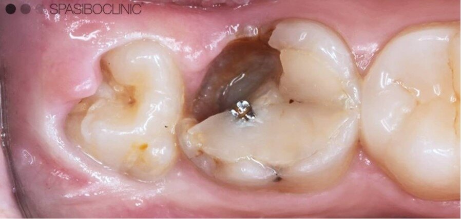 Ситуация до: давно депульпированный 37 зуб (7 нижний справа) раскололся + разрушен глубоко под десну + сломанный инструмент в канале, очаги воспаления... А 38 зуб (восьмерка) прорезался частично, в жевании не участвует + постоянно забивается пища под десну. Прекрасные условия для замены семерки на восьмерку! 🦷Порядок действий классический: по данным КТ изготавливаем 3Д-модель пересаживаемого зуба, удаляем 37 зуб и в его лунку ставим модель. Это нужно для того, чтобы адаптировать лунку по форму нового зуба. Затем извлекаем 38 и устанавливаем его на место 37, вынимая 3Д-прототип. Операцию нужно закончить за 18 минут, пока жива связка, чтобы сосуды смогли начать работать на новом месте. Вся операция заняла 30 минут. На месяц пересаженный зуб объединяется шиной с соседним зубом — чтобы ограничить подвижность на время приживления: 🦷Анатомия 38 зуба практически совпадала с 37, не понадобилась ни коронка, ни изменение формы композитом. Просто сел как родной🤓 Фото до и через 4 месяца после