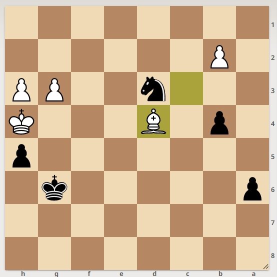 Шахматное окончание в материальном плане равное. Но черные начинают и получают материальный перевес. Не забывайте ставить лайк и писать комментарии. Решение смотрите далее. 1. Черные идут конем на е1. Следующая задача тут>>>>