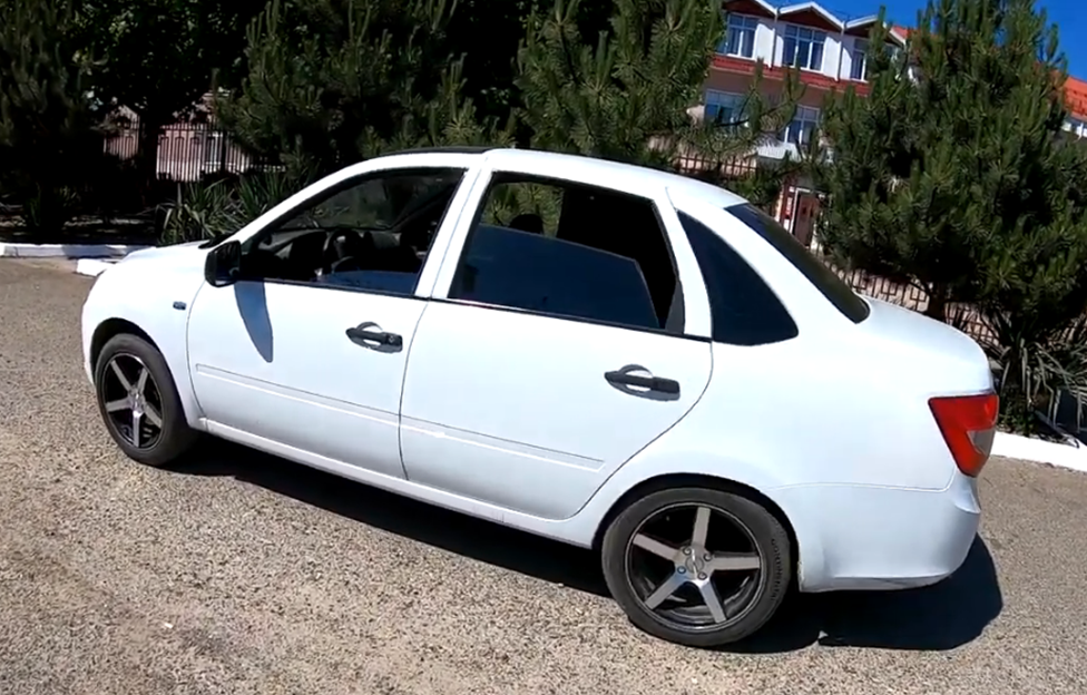 На днях я на своей Гранте переклеил боковые обивки стоек ветрового стекла. Давайте сядем посмотрим, я расскажу, чем и как переклеивал. Посмотрим, как она выглядит. Садимся в мою малышку. Что у нас получилось Если вы помните, по стандарту у Гранты по бокам белые пластиковые накладки. Почему я решил переклеить? Во-первых, из-за цвета. Когда они были белые, цвет как-то отражался от этих стоек, было много бликов. Мне было неприятно, света много. Я решил переделать сначала просто в черный цвет. Я нашел материал. Вначале думал, как сделать, чем покрыть. У нас в маленьком городе немного материала. Зашел в автомагазин, и там попалась мне китайская алькантара. Кстати, она недорогая, но показала себя неплохо. Она представляет с одной стороны начес. Если провести пальцем, то она оставляет следы. Приятная бархатистая поверхность. На ощупь мне приятно. С обратной стороны у нее клеящий слой. Нужно просто сдернуть пленку и аккуратно приклеить на пластиковую обивку. У меня никаких проблем с этим не во