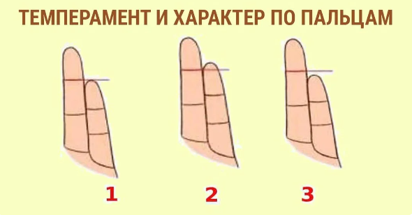 Существует множество закономерностей между строением тела человека и его индивидуальными особенностями. Мы расскажем, как определить темперамент и характер по пальцам на руке. Эта информация поможет вам лучше узнать любого человека, даже не общаясь с ним. Как определить характер по пальцам на руке Чтобы лучше узнать человека, присмотритесь к его безымянному пальцу и мизинцу. Обратите внимание на длину мизинца относительно фаланга безымянного пальца. Проще всего это сделать, взглянув на кисть со стороны ладони. У среднестатистических людей существует 3 варианта соотношения их размеров. 1. Мизинец короче, чем фаланга безымянного пальца.