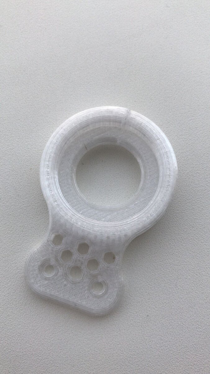 Следующее функциональное изделие было изготовлено из поликарбоната, назначение изделия не раскрывалось, известно лишь то, что оно должно быть легким и очень прочным, в связи с чем выбор пал на ряд материалов, отвечающих предъявляемым требованиям – угле- и стеклонаполненные пластики (композиты от компании REC), PEEK (полиэфирэфиркетон), PEKK (полиэфиркетонкетон) и PC (поликарбонат). Был выбран поликарбонат, поскольку это самый дешевый материал из всех перечисленных. Процесс получения PC заключается в поликонденсации бисфенола А и фосгена, поэтому он относится к не самым «здоровым» материалам для 3D-печати. Если говорить о сферах применения этого материала, то можно выделить производство оптического стекла из-за его прозрачности, использование в производстве мотоциклетных шлемов и пуленепробиваемых окон из-за его высокой ударопрочности (источник: https://additiv-tech.ru/publications/vse-chto-vam-nuz..).