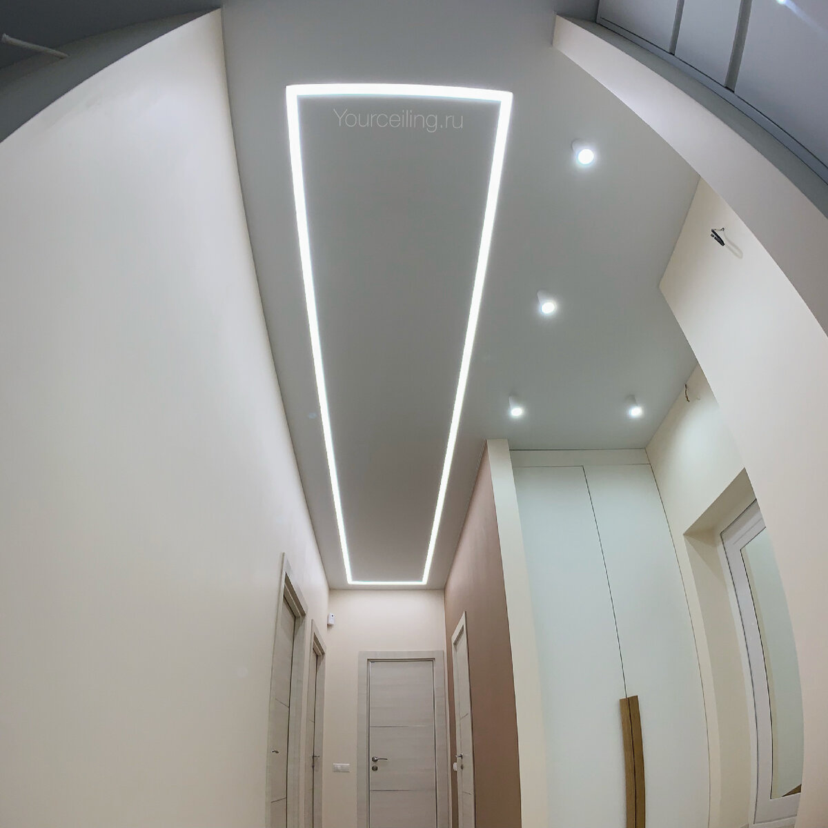 Светодиодная лента 12 ват, 160точек . Световая линия в длинном коридоре выглядит намного лучше в замкнутом контуре, чем если бы это была одна полоса по центру . #натяжные потолки #натяжные потолки москва #световая линия #освещение