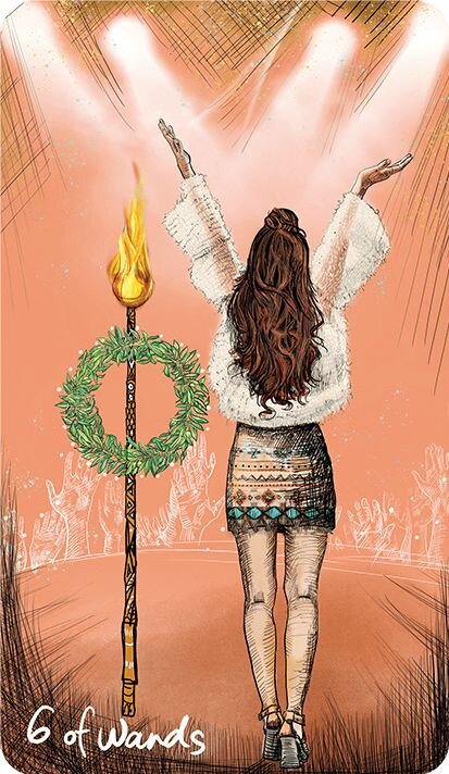 И вот как описать вам 6 жезлов? Она про новый путь, про лидерство и уверенность, про победы и достижения, про ведение за собой, про авторитет, и т.д. в этом роде.