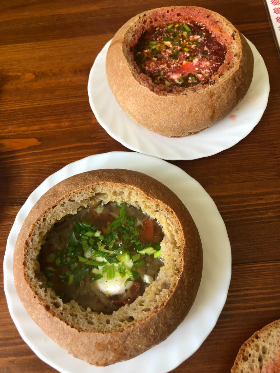 сегодня я посетила заведение национальной кухни нашего города. Кухня была марийская, так как живу я в республике Марий Эл☺️ Заказала я суп в ХЛЕБЕ - это блюдо я попробовала впервые лет 5 назад, и , конечно же, оно мне тоща очень понравилось. А сегодня, когда я проходила мимо данного заведения, я вспомнила тот далекий вкус этого супа и решила зайти , чтобы ещё раз его попробовать. И я хочу вам сказать , что это объедение 🤤 я ела щи в хлебе 🥬 ваша Леночка 🥝