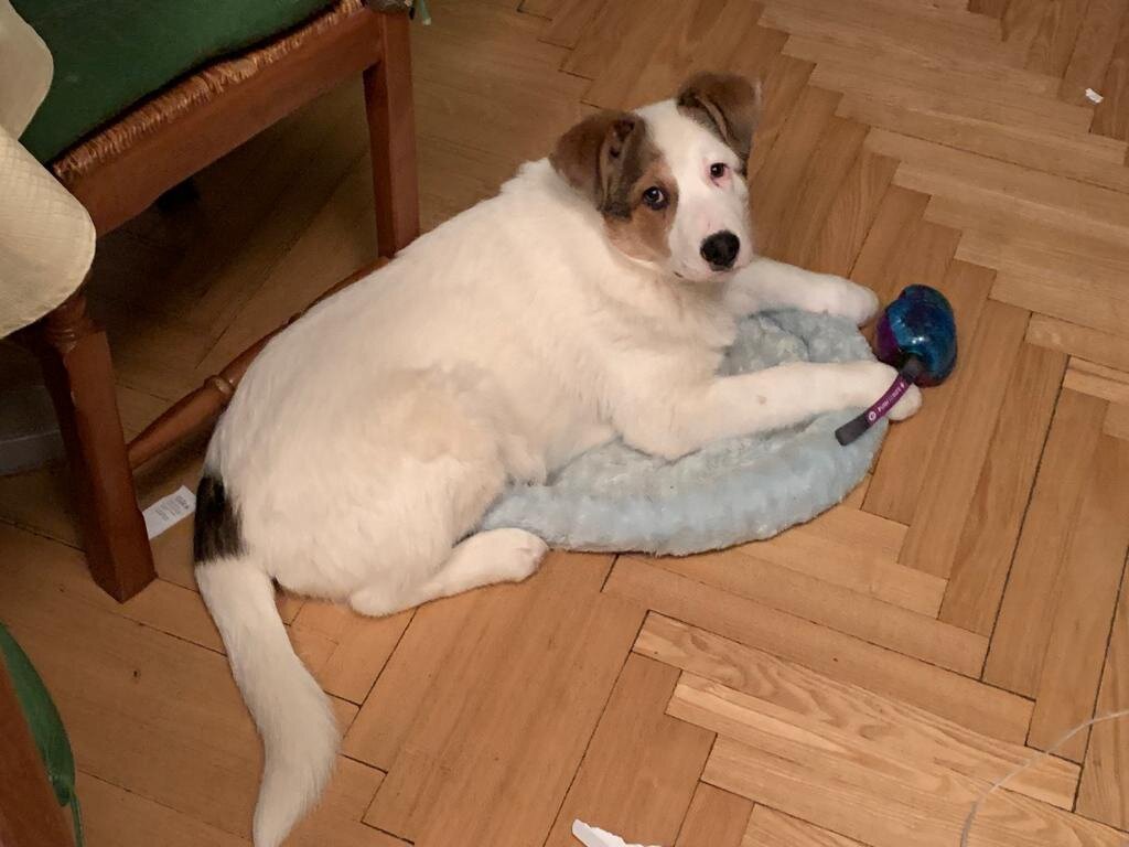 Малыш Сэм вот уже почти три месяца дома . Счастливый, радостный, упитанный, любимый подросточек. Радуется жизни, играет, подружился с котами и другими собаками. Его жизнь начиналась не так радостно, а вернее совсем безрадостно . Мама Сэма - бывше домашняя собака, выброшенная как и сотни тысяч других собак, то ли нерадивыми хозяевами то ли наследниками. Девочка была не стерилизованная и соответственно быстро забеременела и родила щенков под гаражами. Так дети и жили в этой яме, мамку стерилизовали по программе ОСВВ. Всего было пять щенков. Мы узнали про семейство и решили попробовать отловить щенков. Когда приехали, Сэм поранил лапку и дети обрабатывали её. Сэм из всех щеночков был самым ручным и я решила не испытывать судьбу и сразу его забрать. Посадить его в машину труда не составило. В тот день других щенков отловить не удалось, зато дети нам сообщили, что под соседним гаражом сидит маленький котенок. Откуда он взялся никто не знал. Был он один и было совершенно ясно, если мы е
